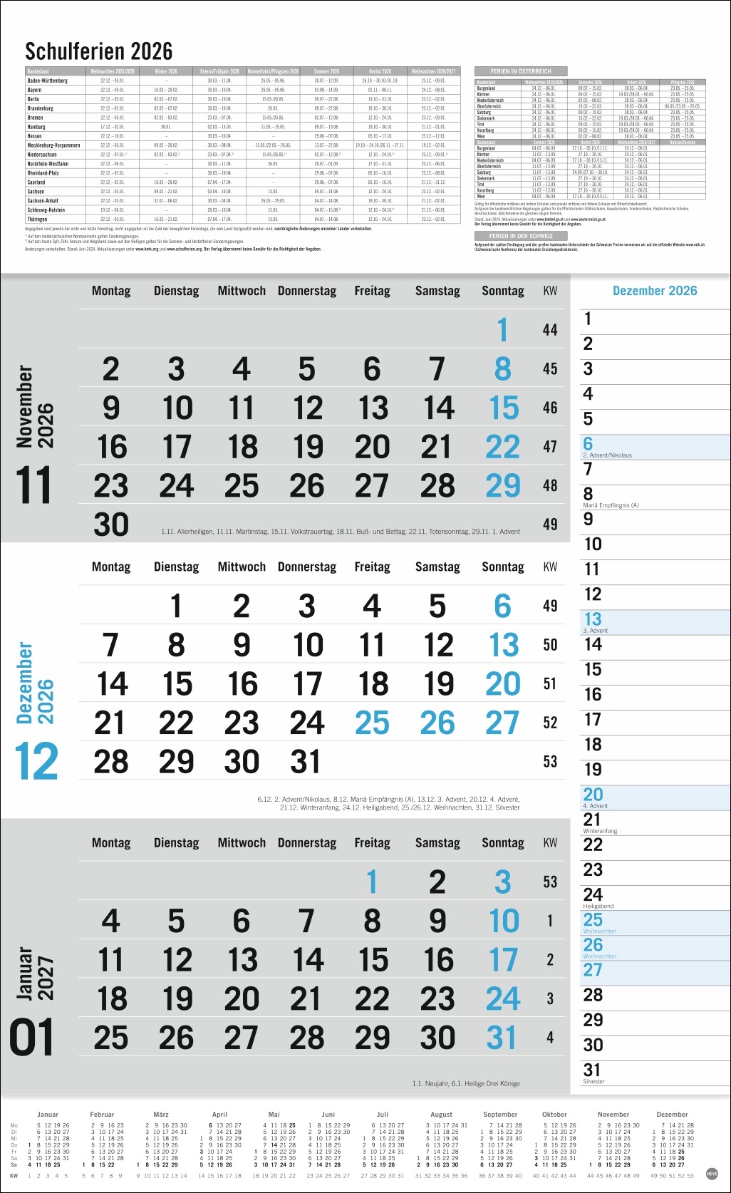 - Volle Konzentration auf das Wesentliche: 3-Monats-Kombiplaner mit einer Spalte für Notizen und farblich abgesetzten Wochenenden und Feiertagen