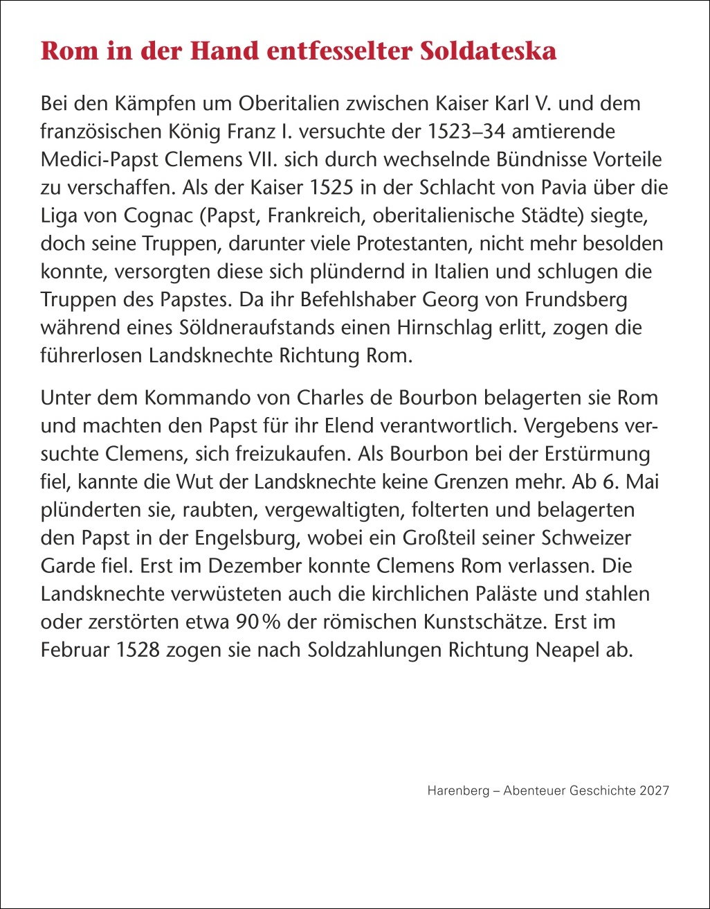 - Unterwegs auf Zeitreise in der Weltgeschichte: Der „Abenteuer Geschichte“- Abreißkalender für jeden Tag
