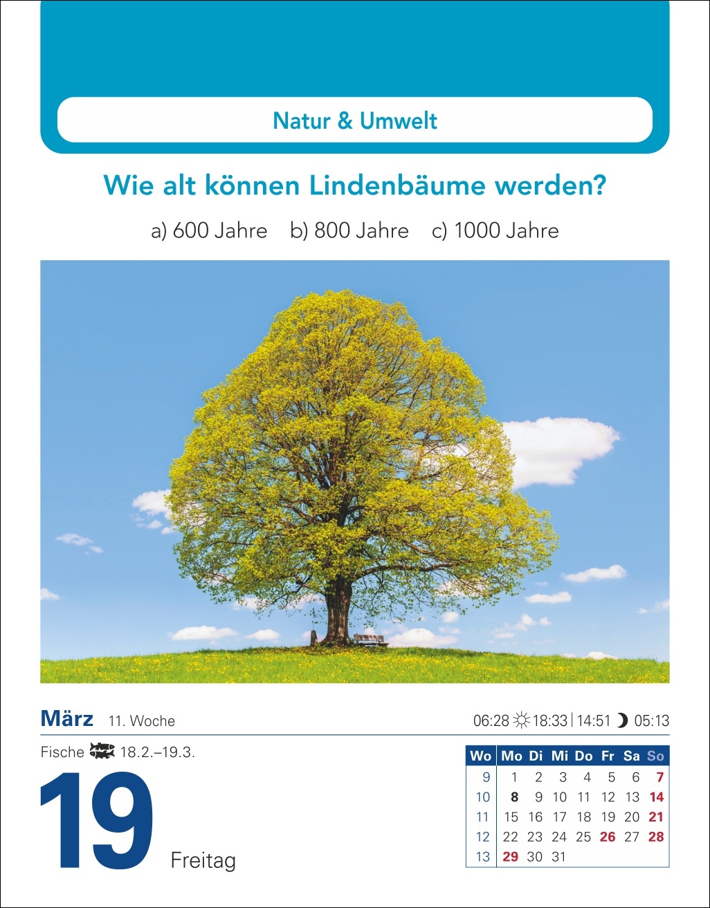 - Schlau in den Tag starten oder Wissen tanken in der Büropause: Kalender zum Aufstellen im praktischen 12,5×16 cm Format