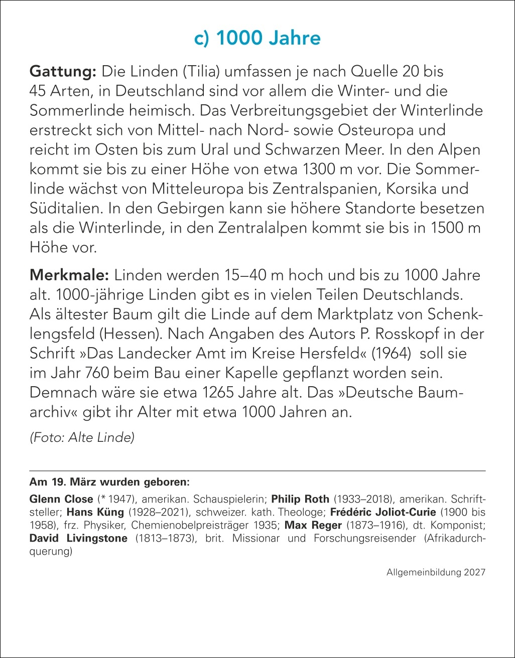 - Allgemeinbildung 2027: Der beliebte Original-Kalender von H<arenberg aus dem Athesia Kalenderverlag