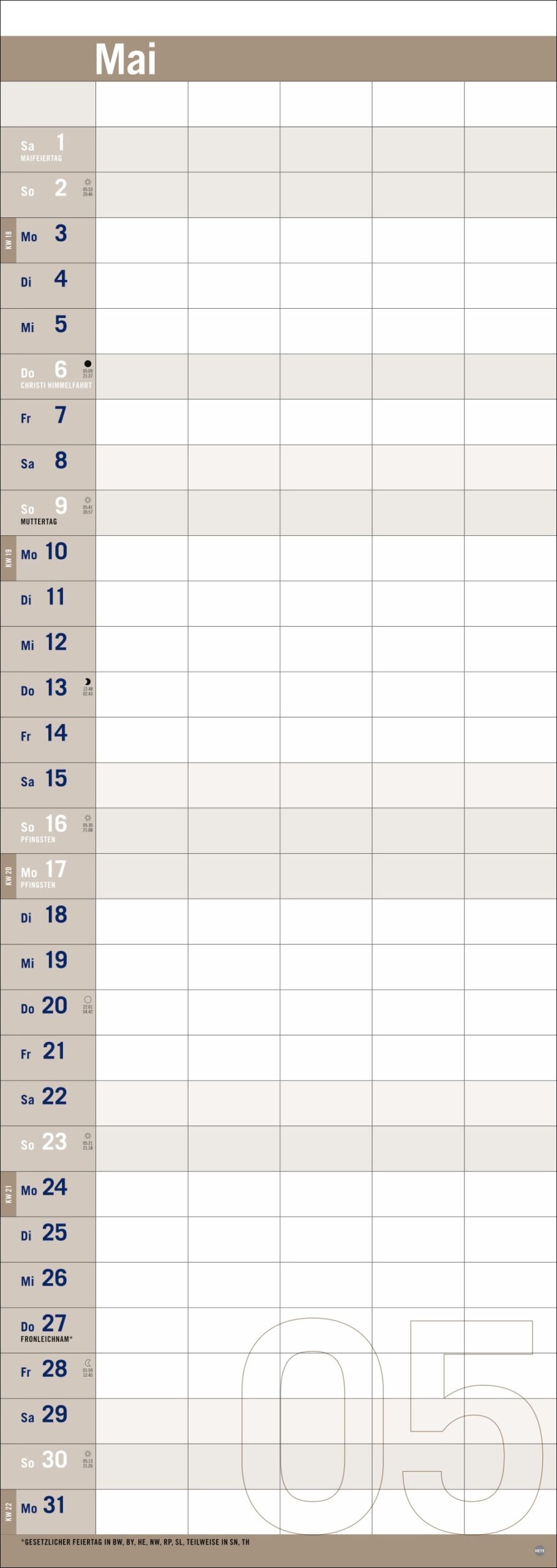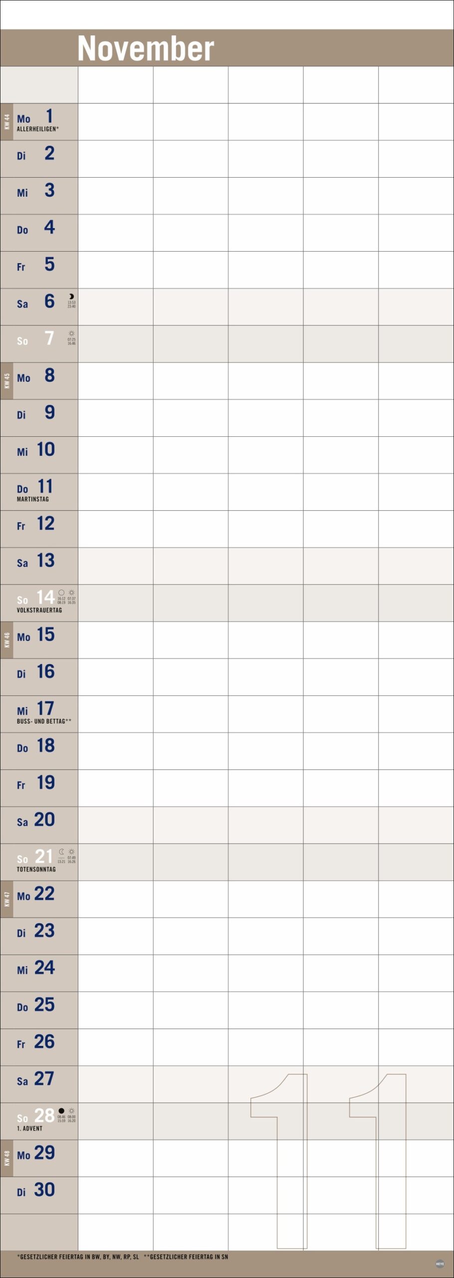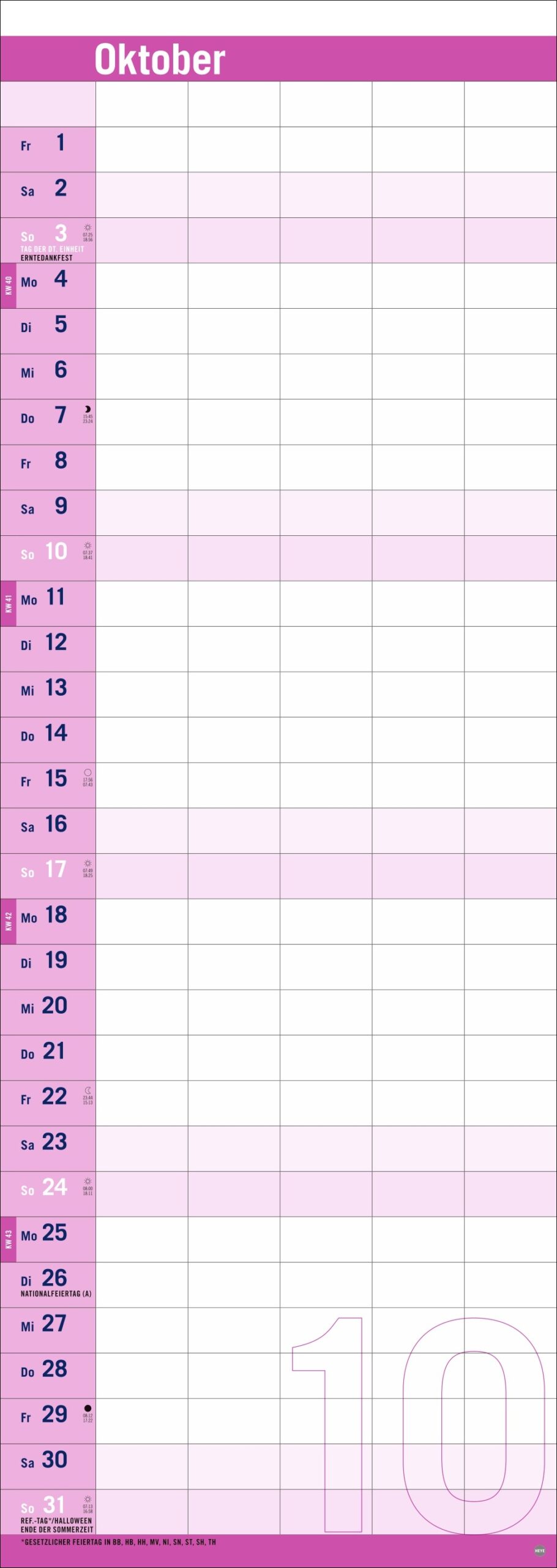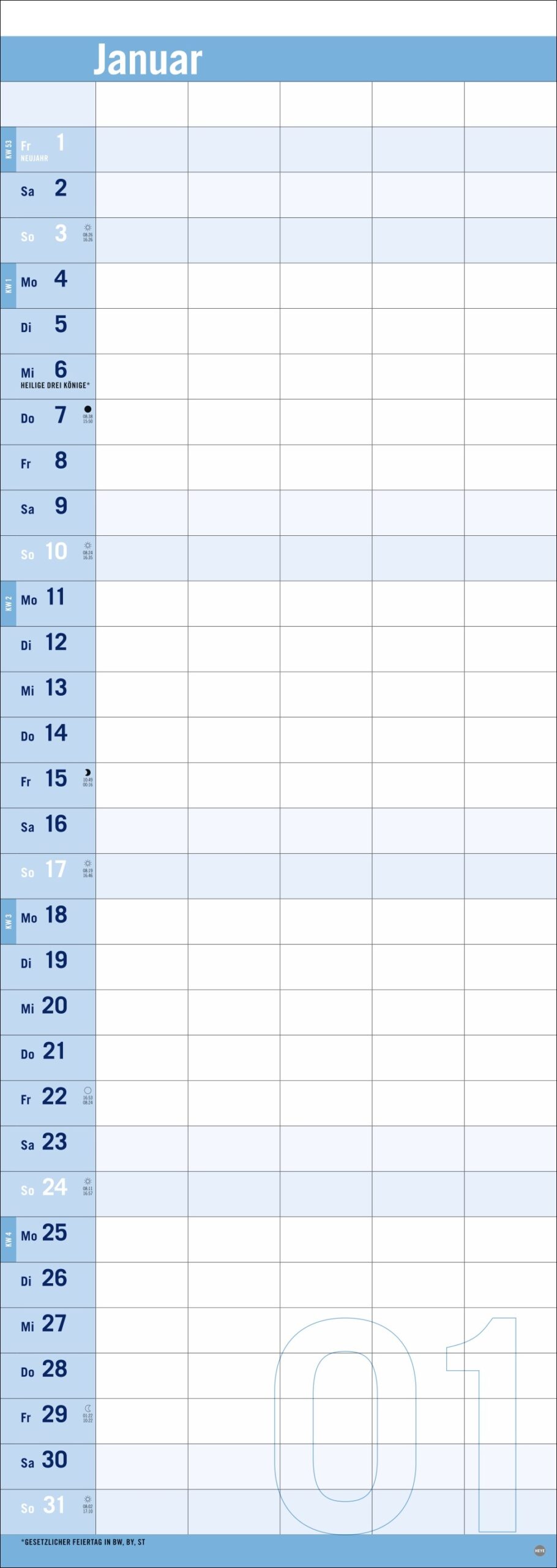 • Auf das Wesentliche reduziert mit Fokus auf die Dinge, die wichtig sind: Kalender mit Schulferien im Format 24,5 x 69 cm