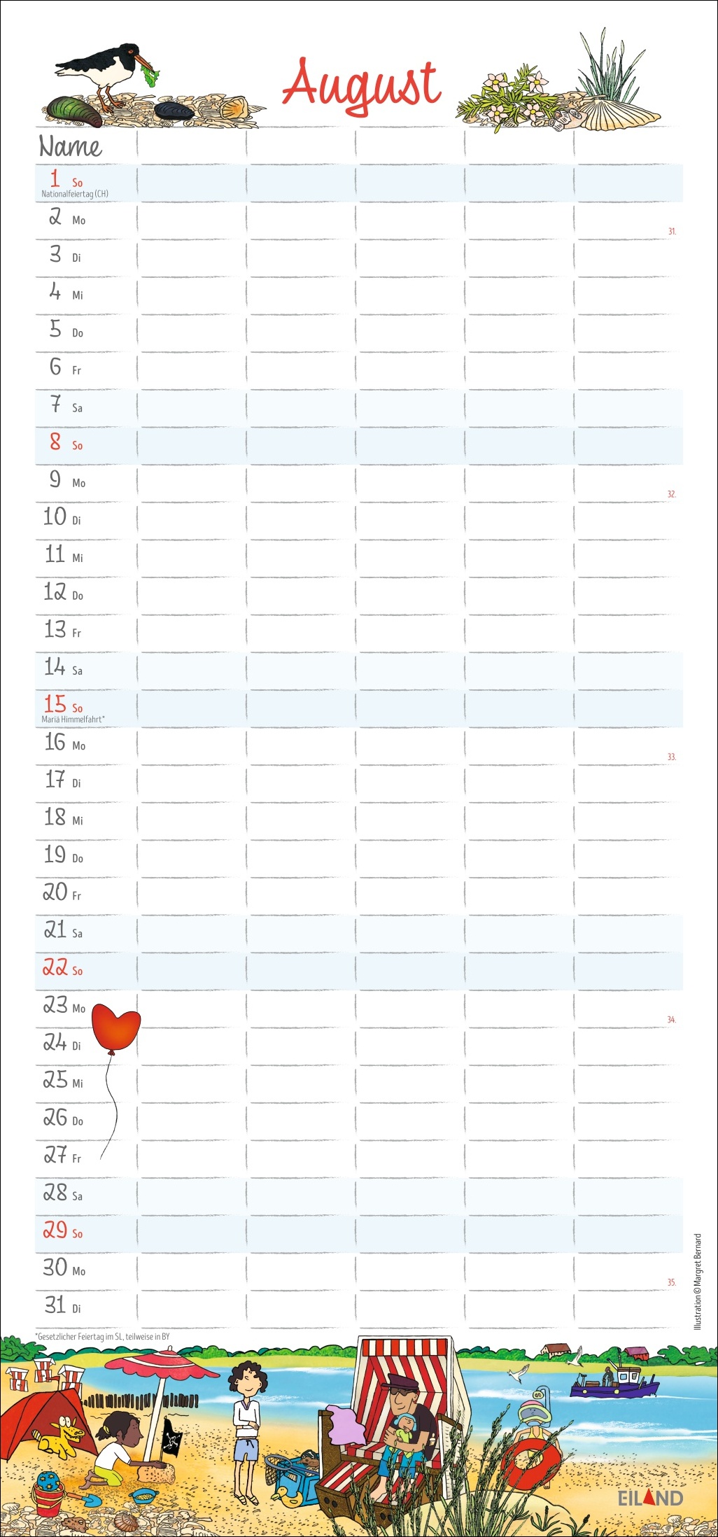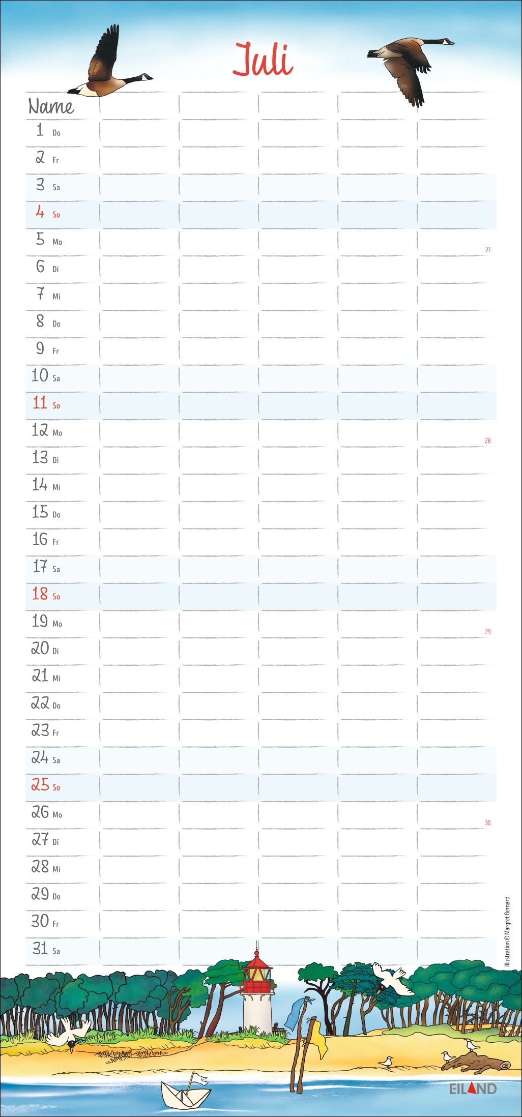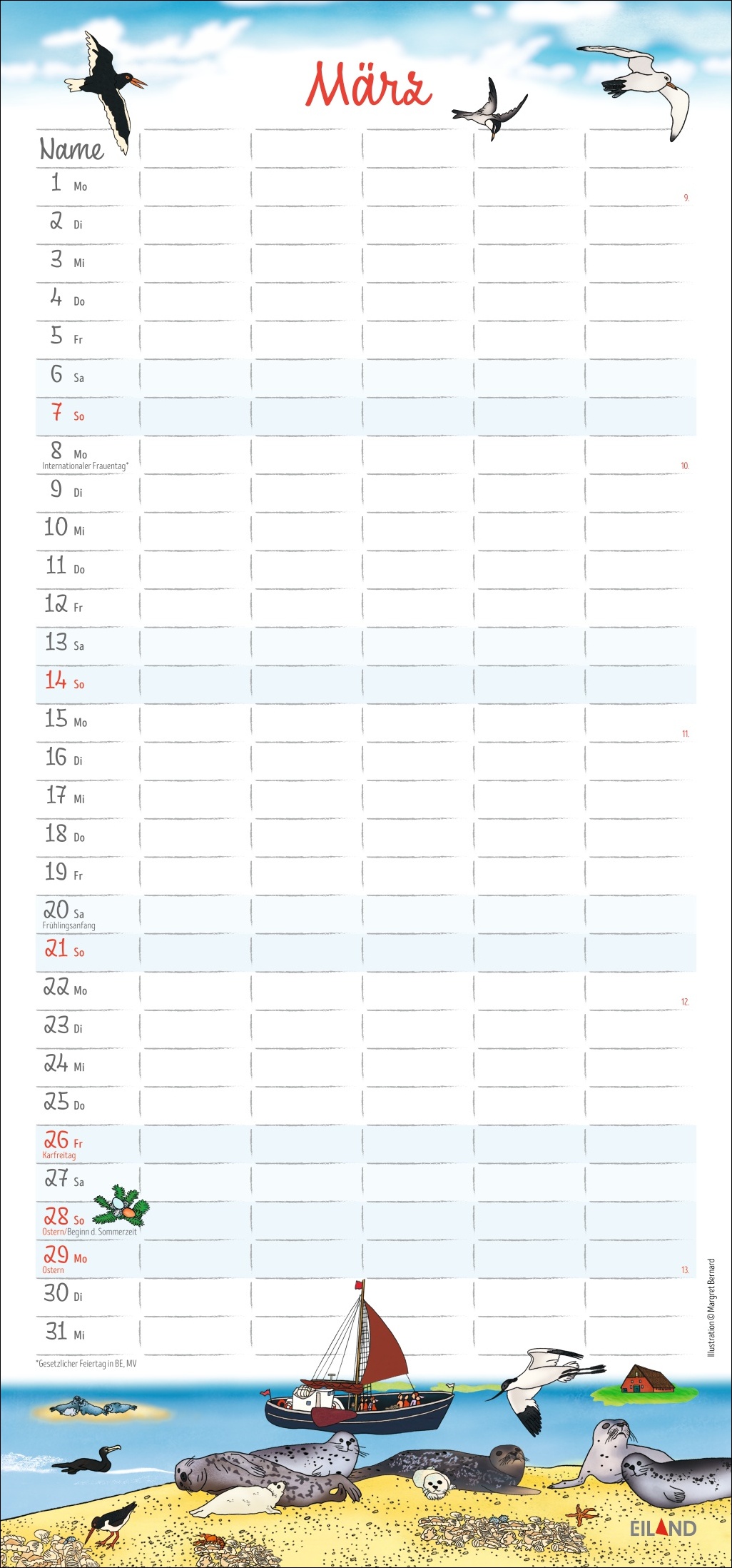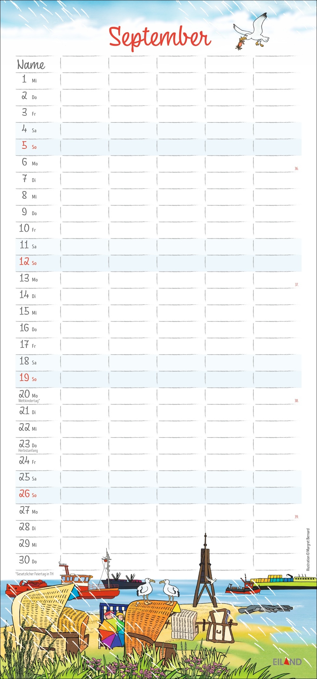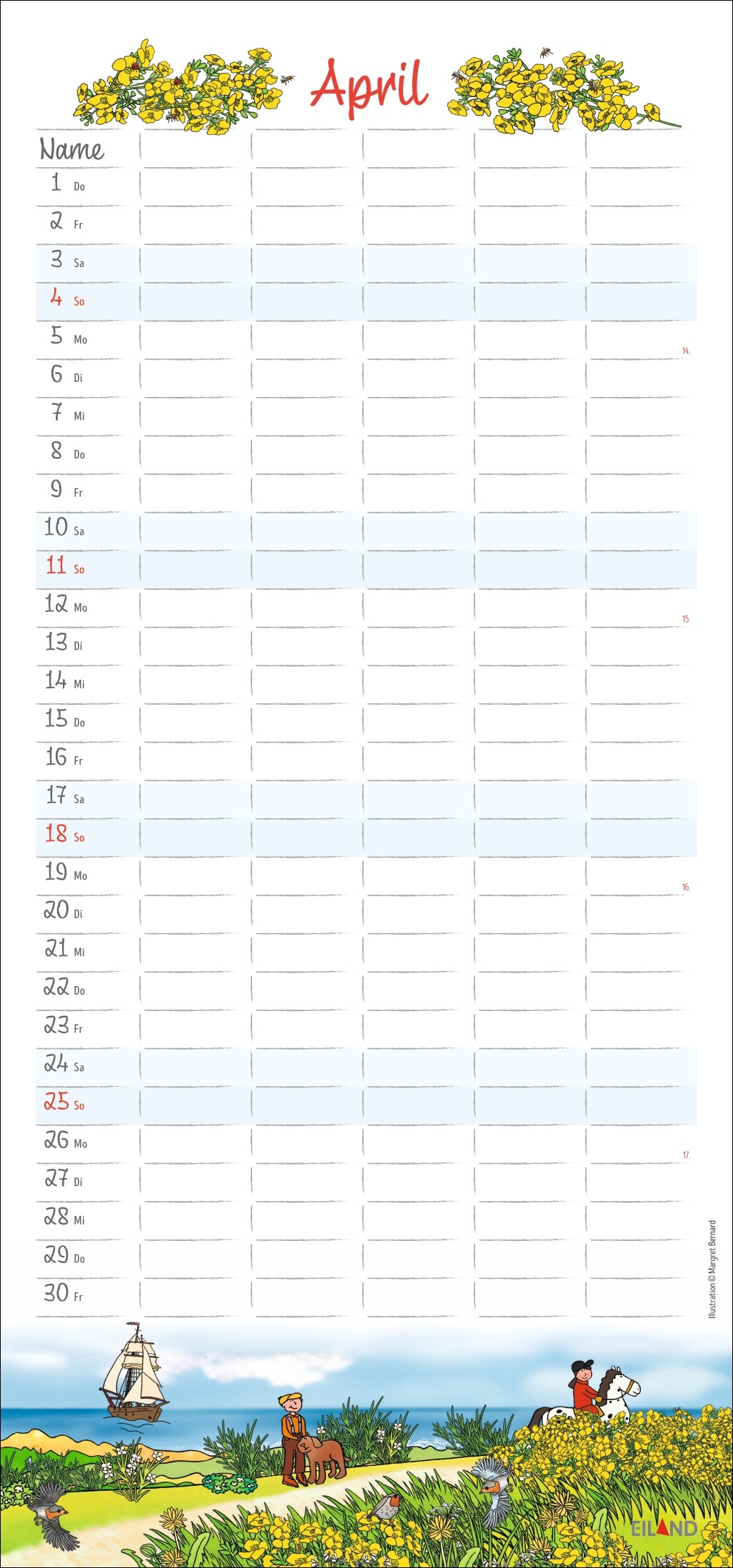 - 5 Spalten, witzige Illustrationen von Margret Bernard und ganz viel Überblick: so wird der Familienalltag zum Kinderspiel