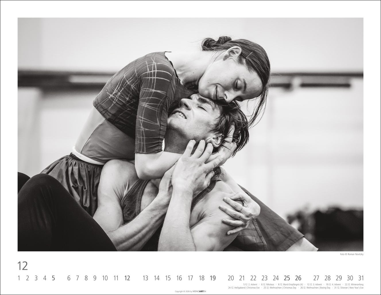 - Fotokalender mit ausdrucksstarken Tanz-Momenten in ästhetischen Schwarz-Weiß-Aufnahmen, festgehalten vom Balletttänzer und Choreografen Roman Novitzky