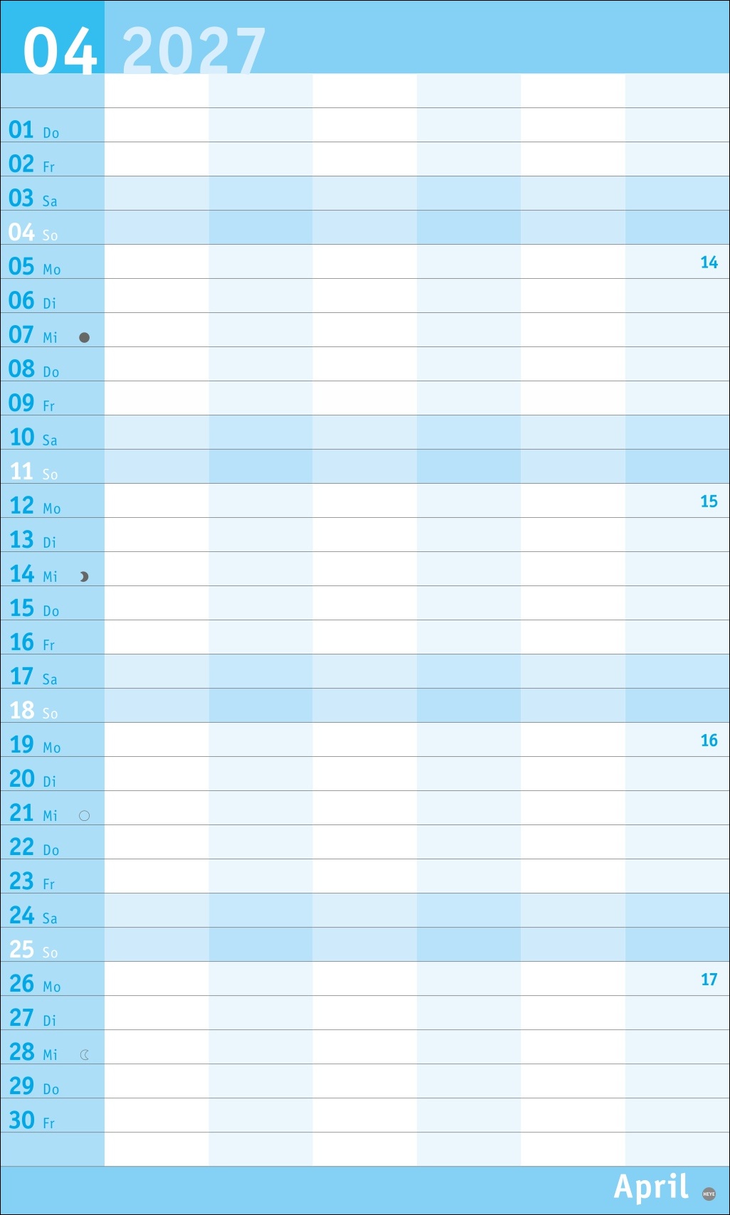 - Unser erfolgreiches Konzept für Familienplaner: 6 Spalten mit ausreichend Platz für die ganze Familie im übersichtlichen 27 x 45 cm-Format
