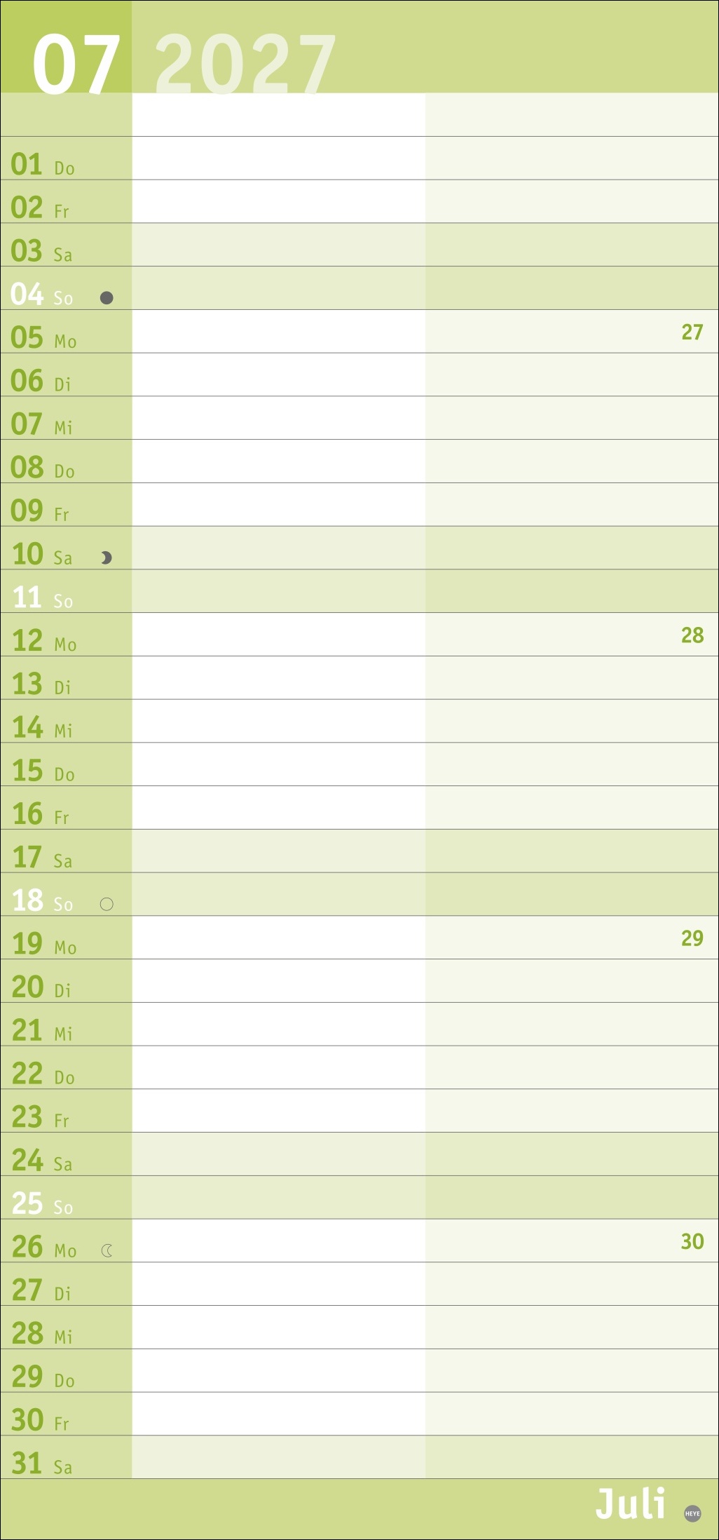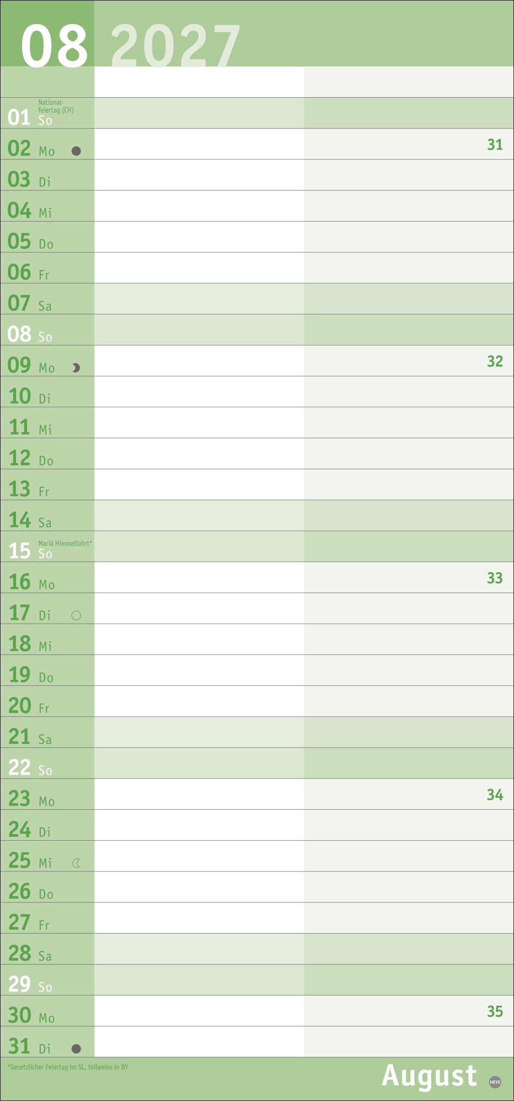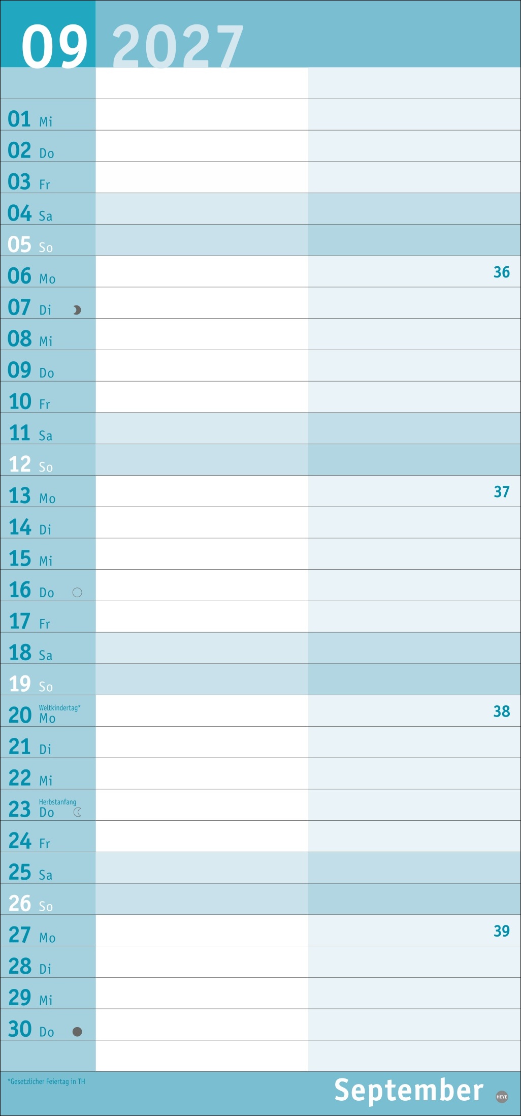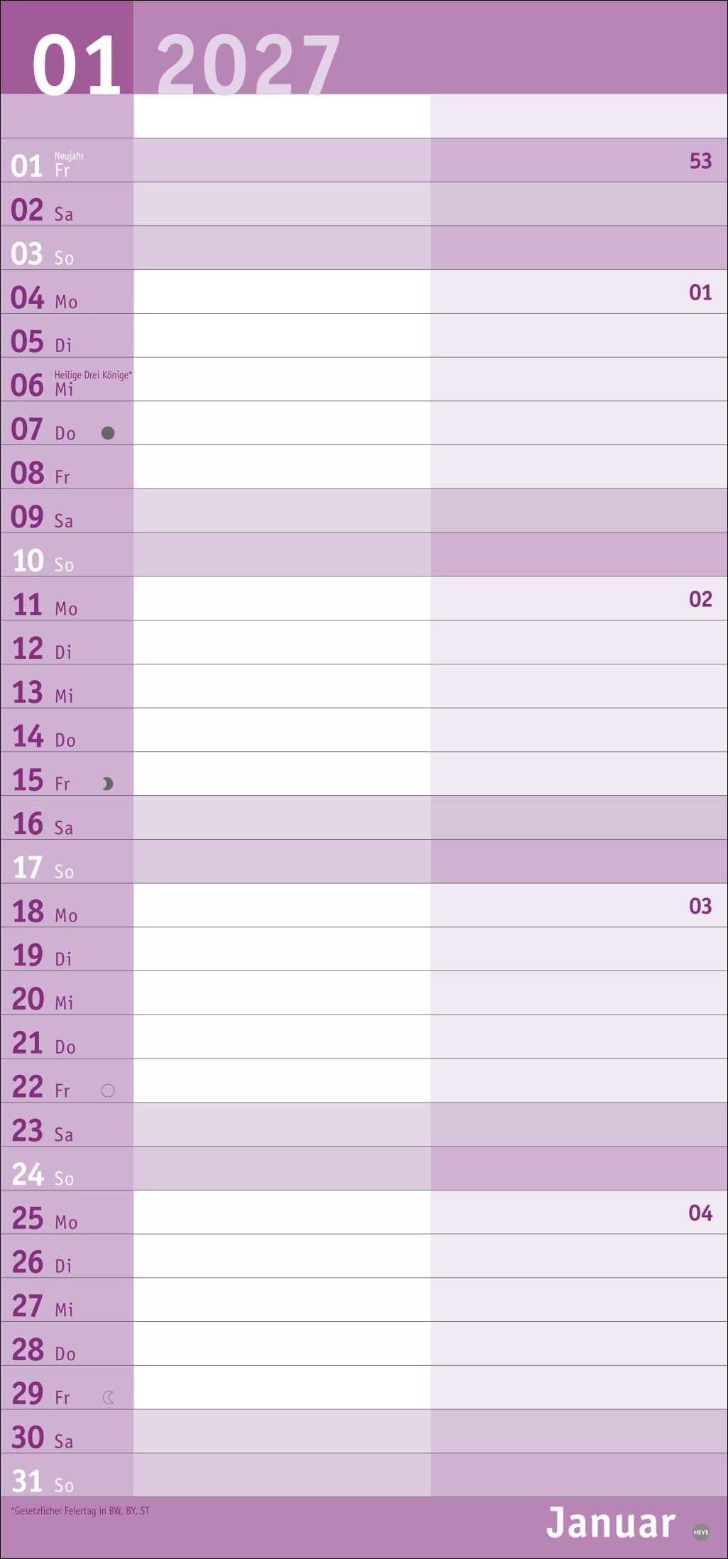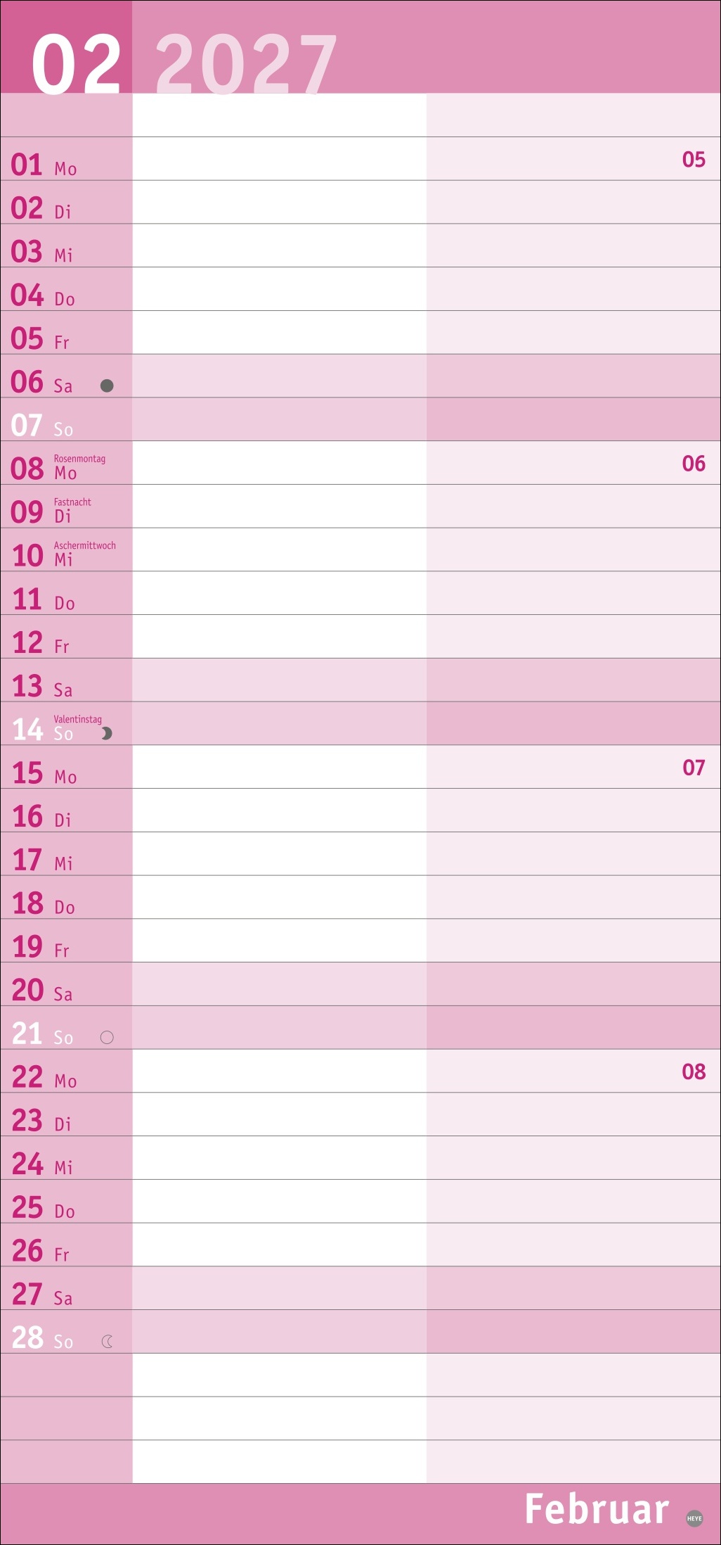 • Geburtstage, wichtige Termine und Feiertage auf einen Blick: Großzügig gestalteter Wandkalender zum Eintragen mit 2 Spalten im Format 21 x 45 cm