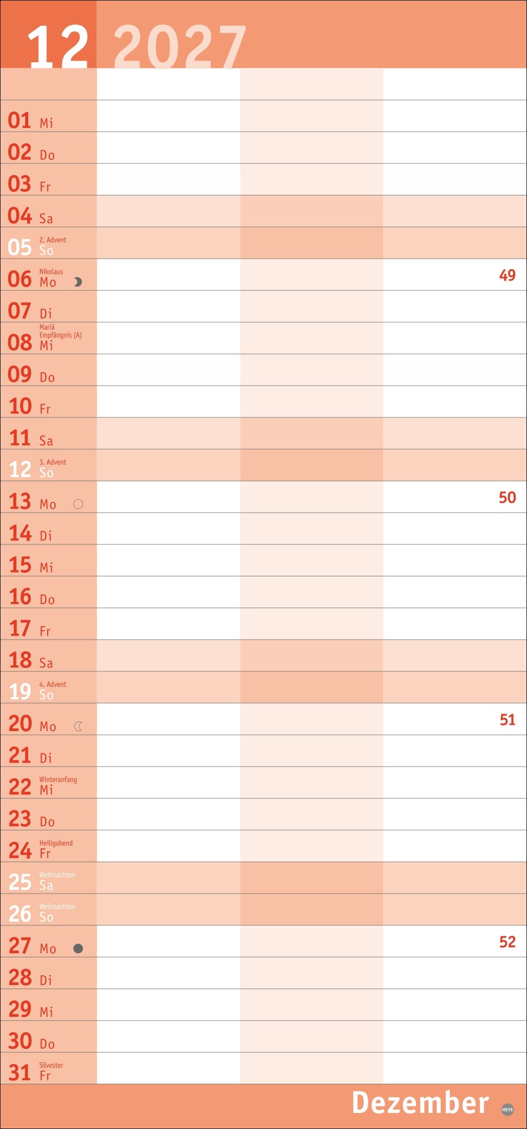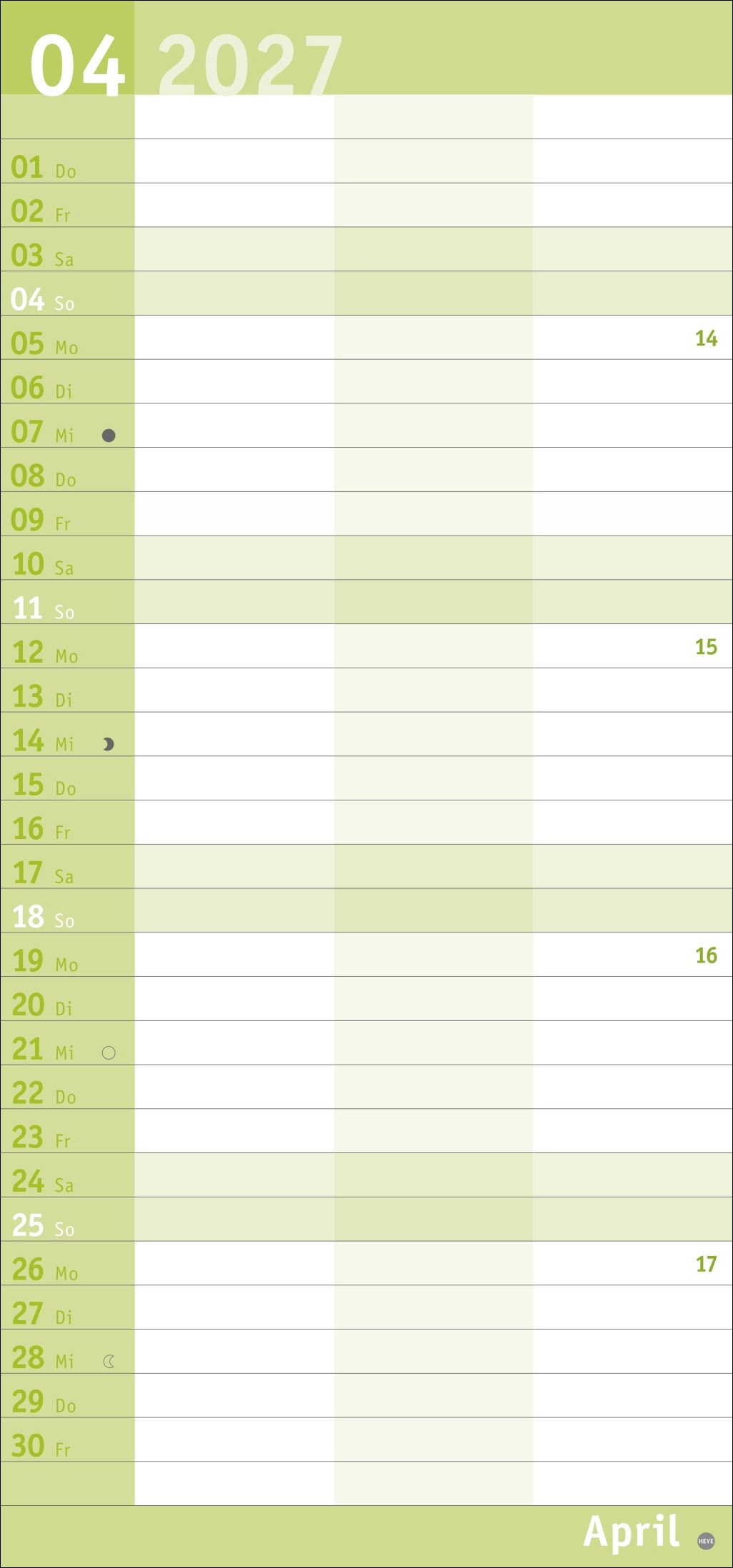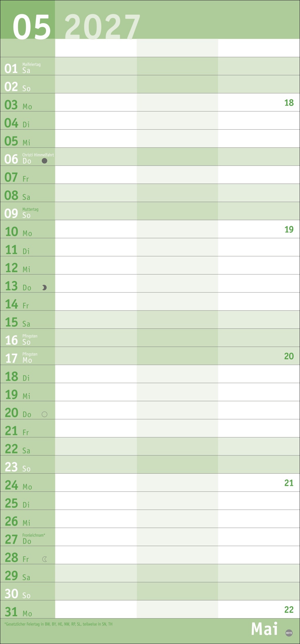 • Langfristig planen mit Überblick: Großzügig gestalteter Wandkalender zum Eintragen mit 3 Spalten im Format 21 x 45 cm