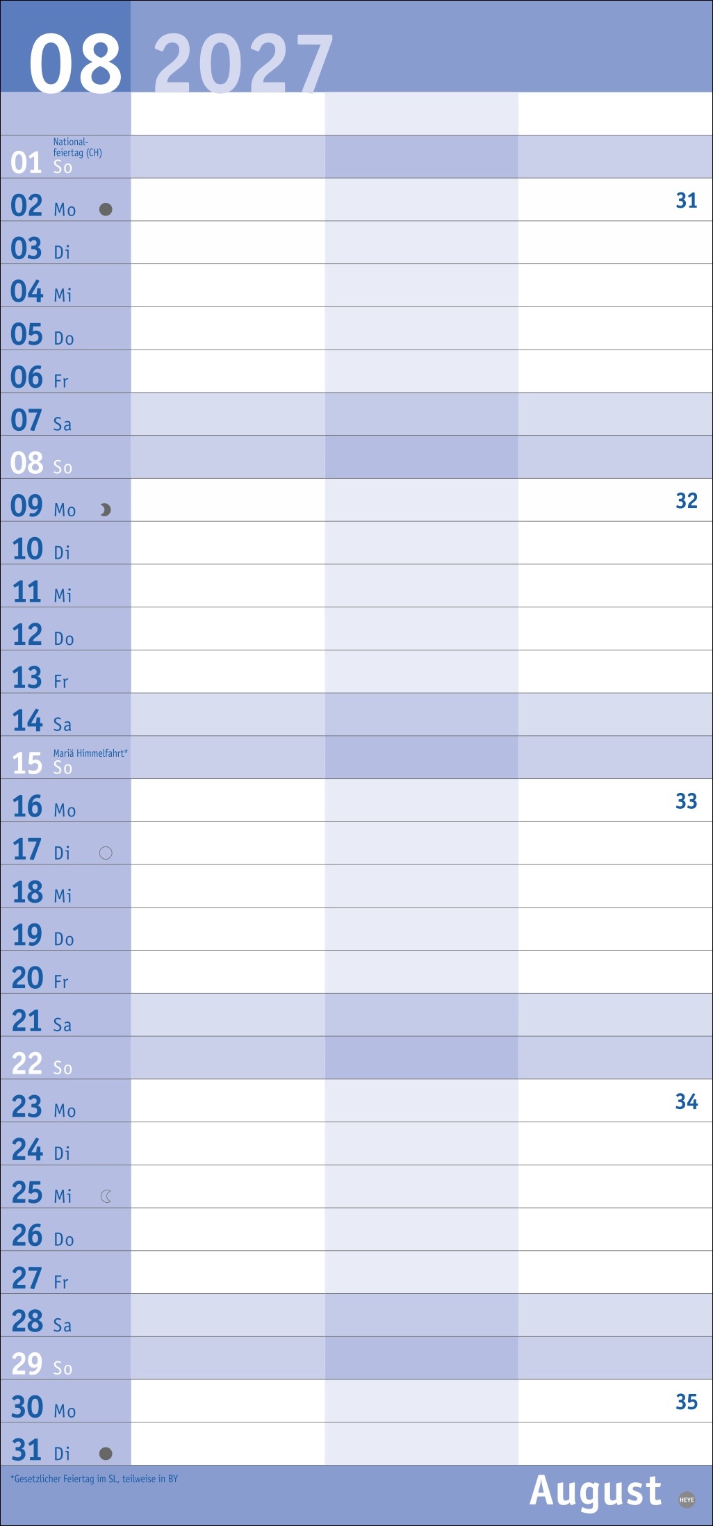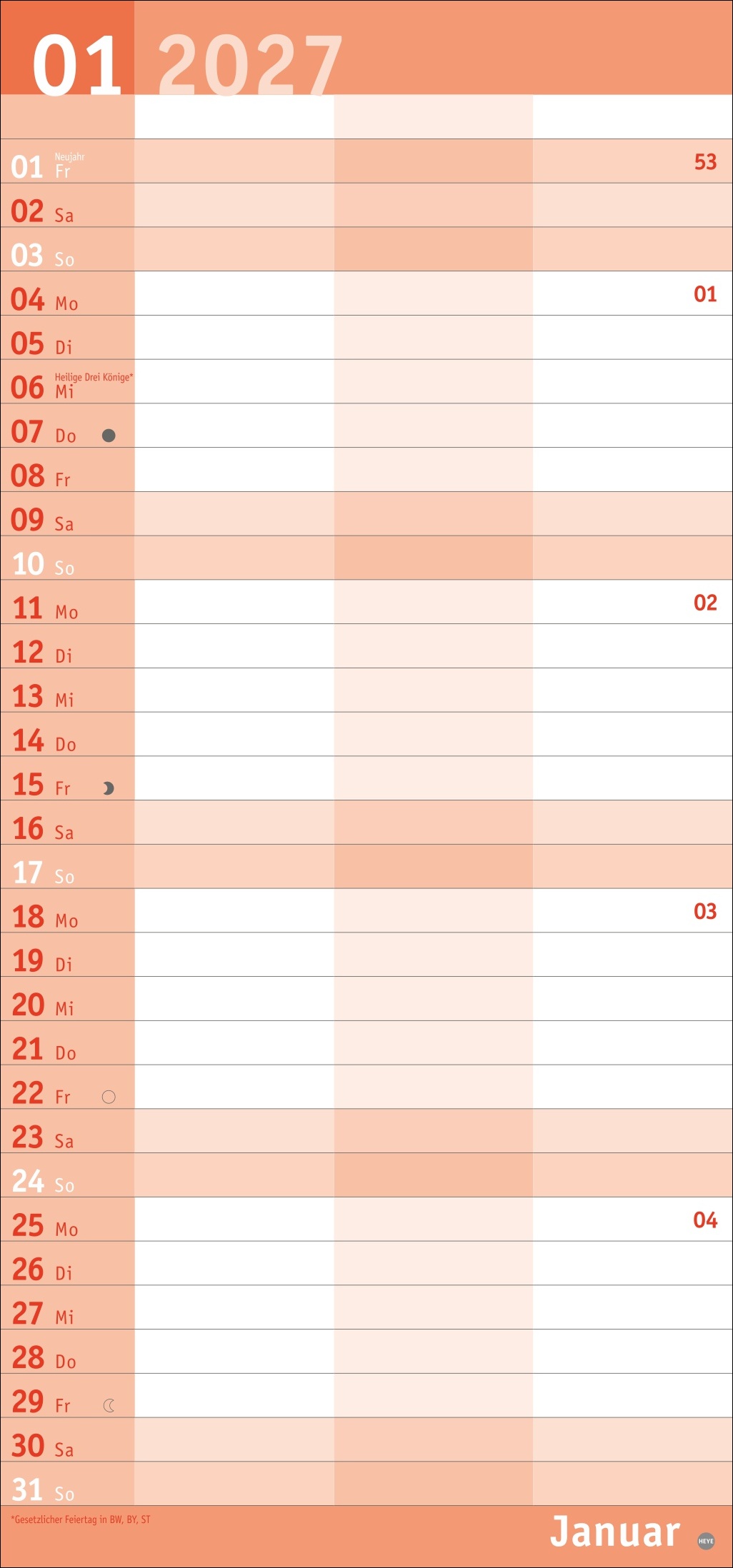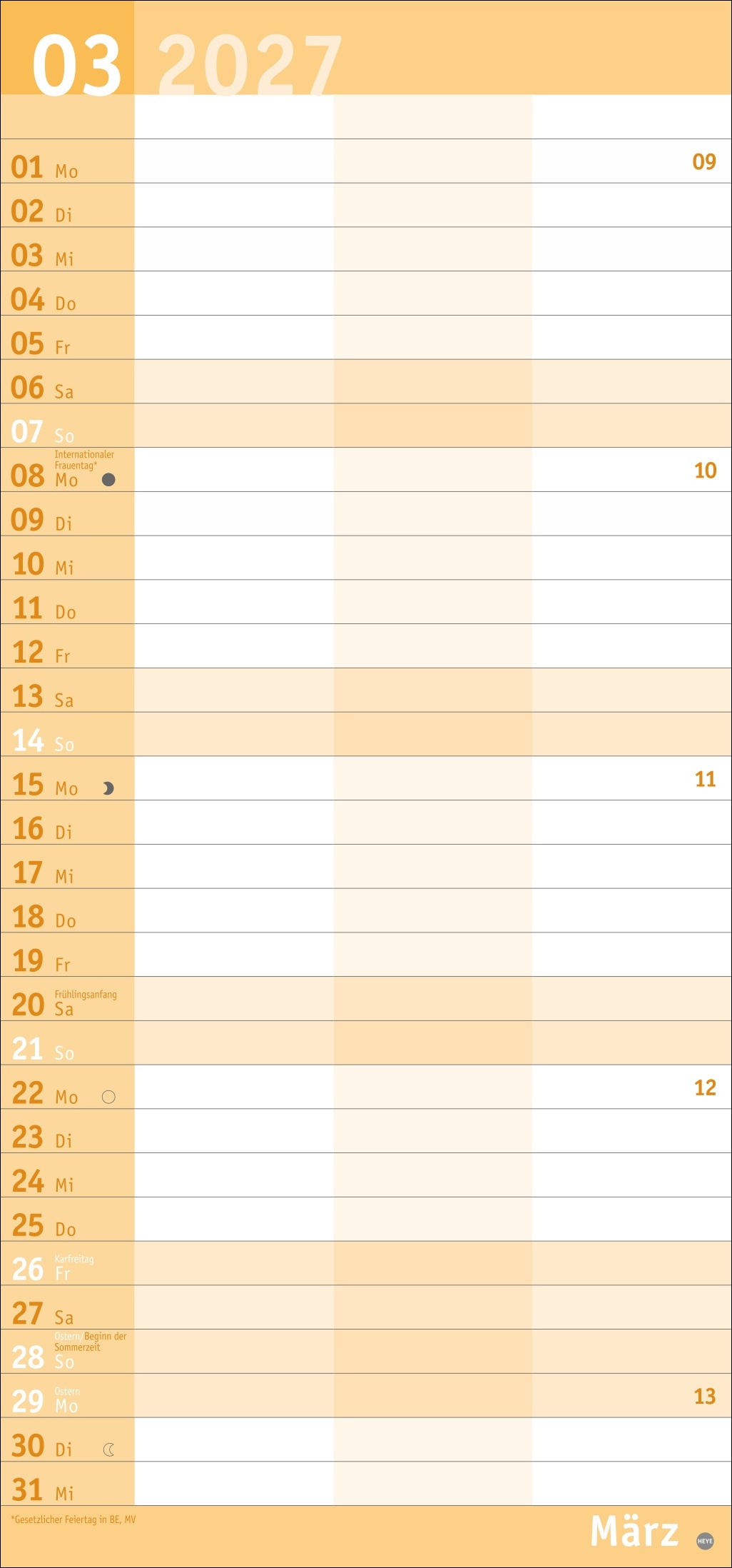 • Langfristig planen mit Überblick: Großzügig gestalteter Wandkalender zum Eintragen mit 3 Spalten im Format 21 x 45 cm