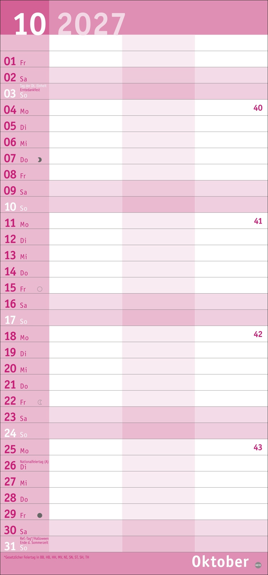 • Fröhlich bunt und gleichzeitig neutral: Kalender für zwei ohne störende Designelemente, der Platz für das Wesentliche lässt