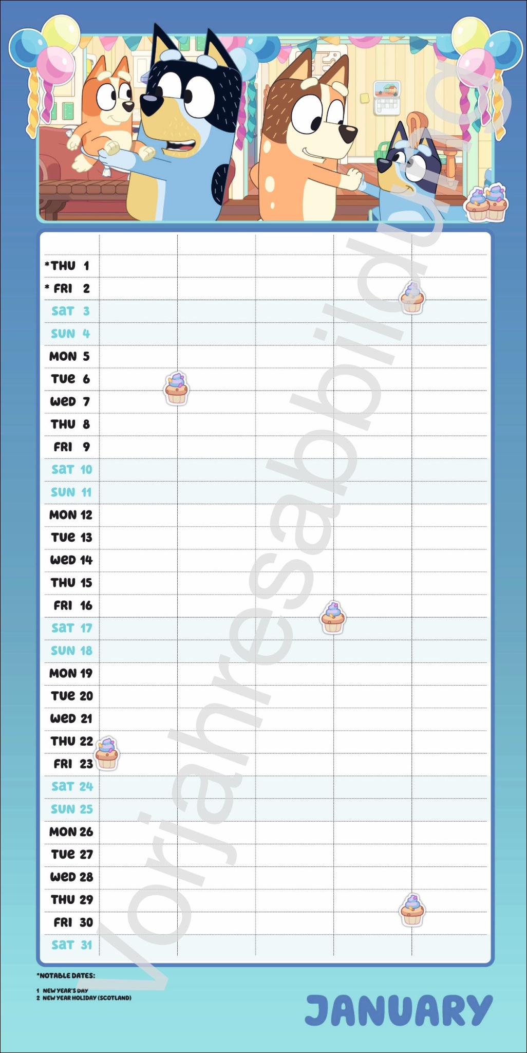 • Gut geplant durch den Alltag: Der große Bluey-Familienkalender 2027 mit 5 Spalten