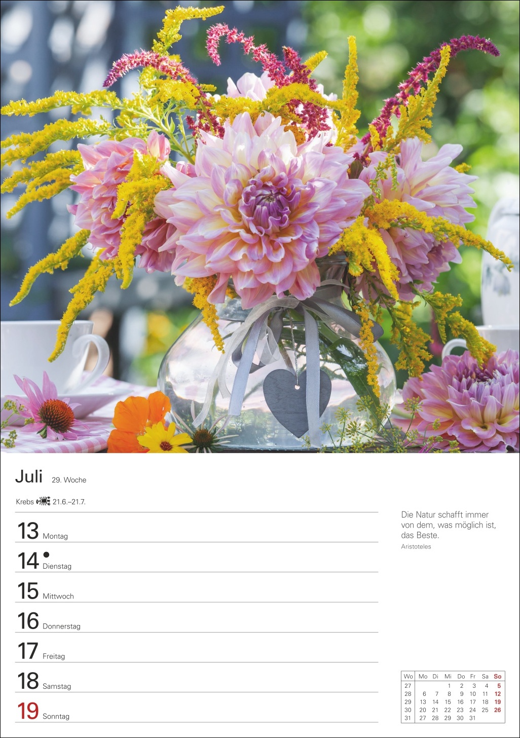 - Woche für Woche üppige Arrangements, passend zur Jahreszeit: 53 farbintensive Blumen-Bilder