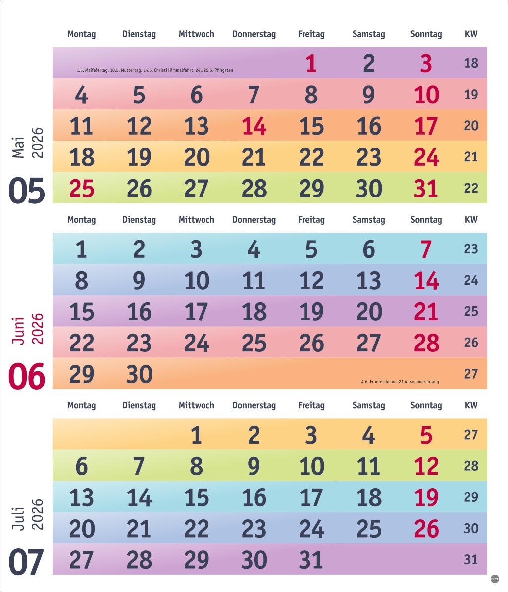 - Nie wieder im Datum irren: mit dem Bunte Wochen 3-Monats-Kalender behalten Sie alles im Blick – und nicht nur die aktuelle Woche