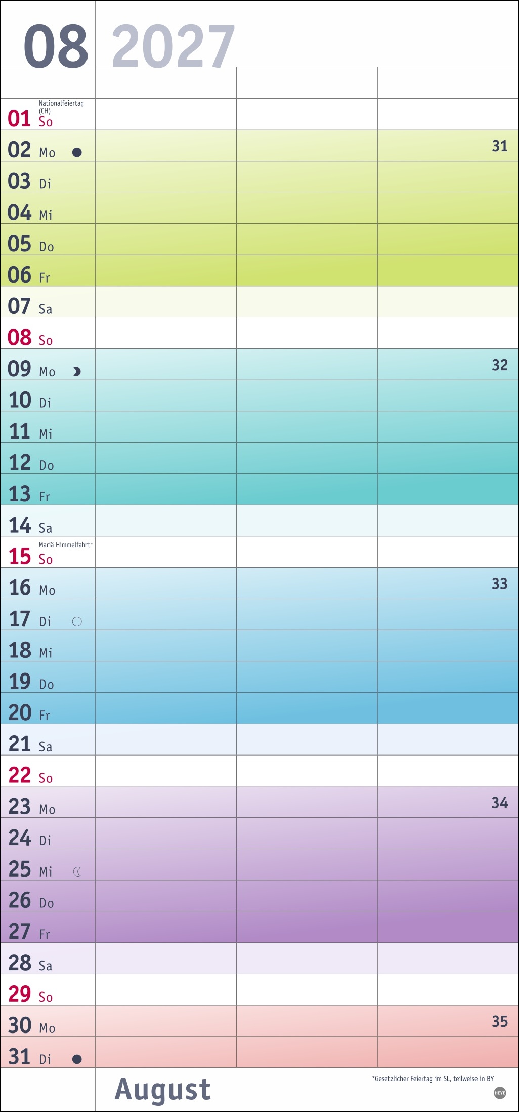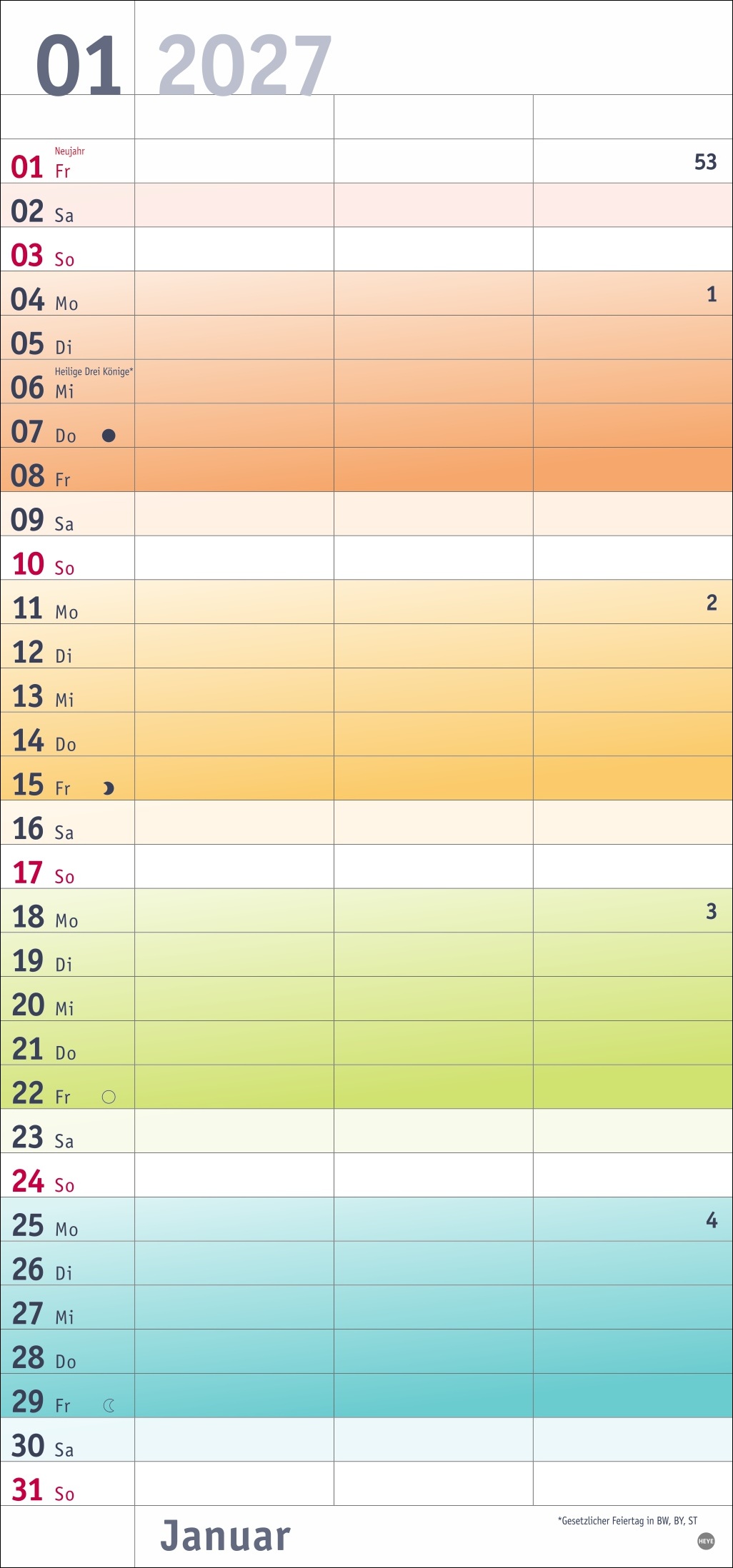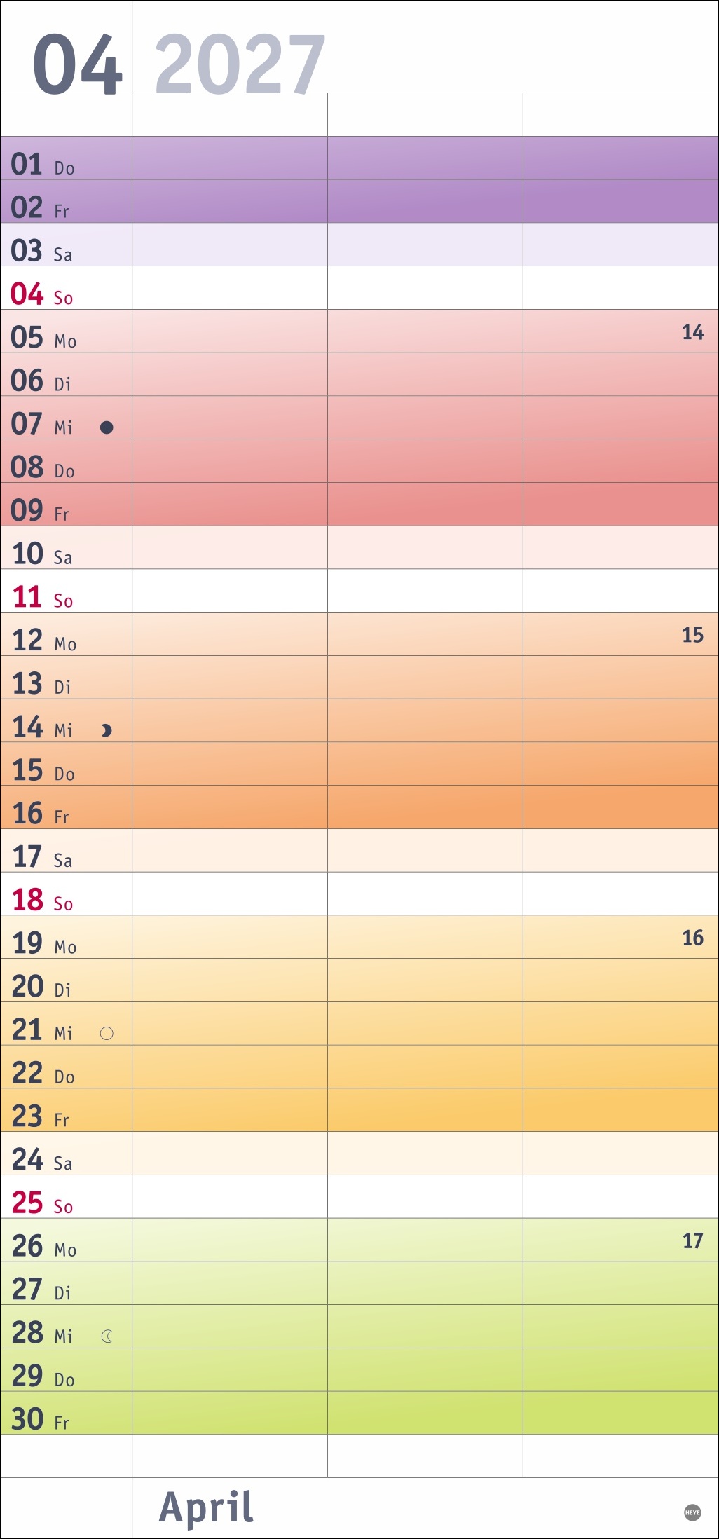 • Bunt wie das Leben als verliebtes Pärchen: Jede Woche eine neue Farbe, die für den besseren Überblick sorgt