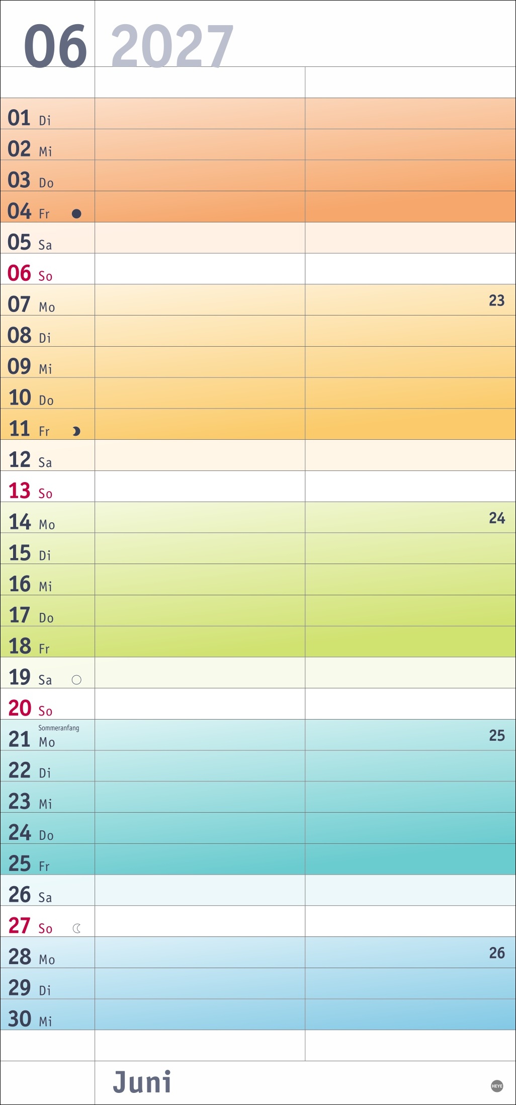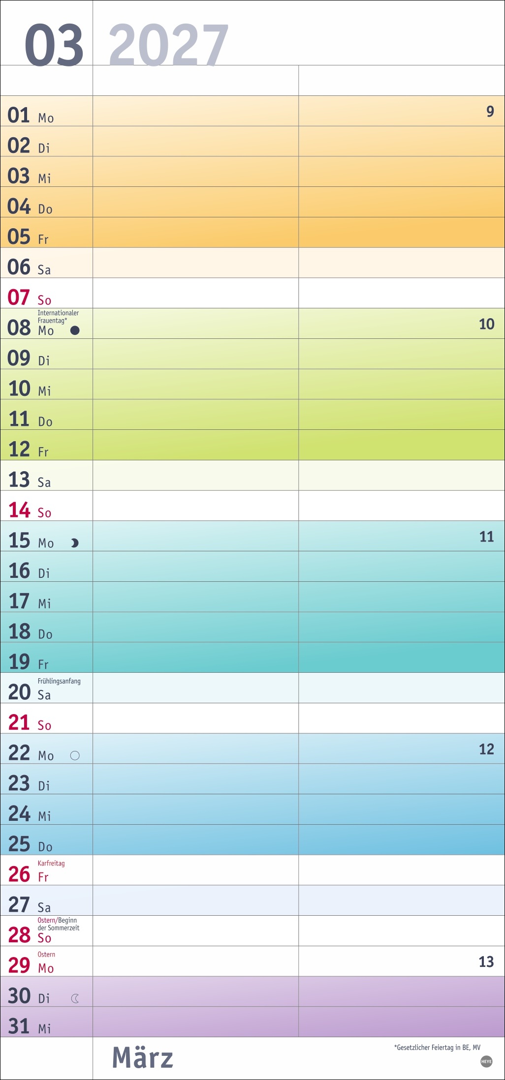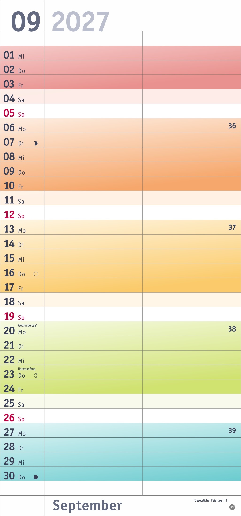 • Fröhlich bunt wie das Leben selbst: Mehr Übersicht bei Terminen, Feiertagen und Co. mit unterschiedlichen Wochenfarben