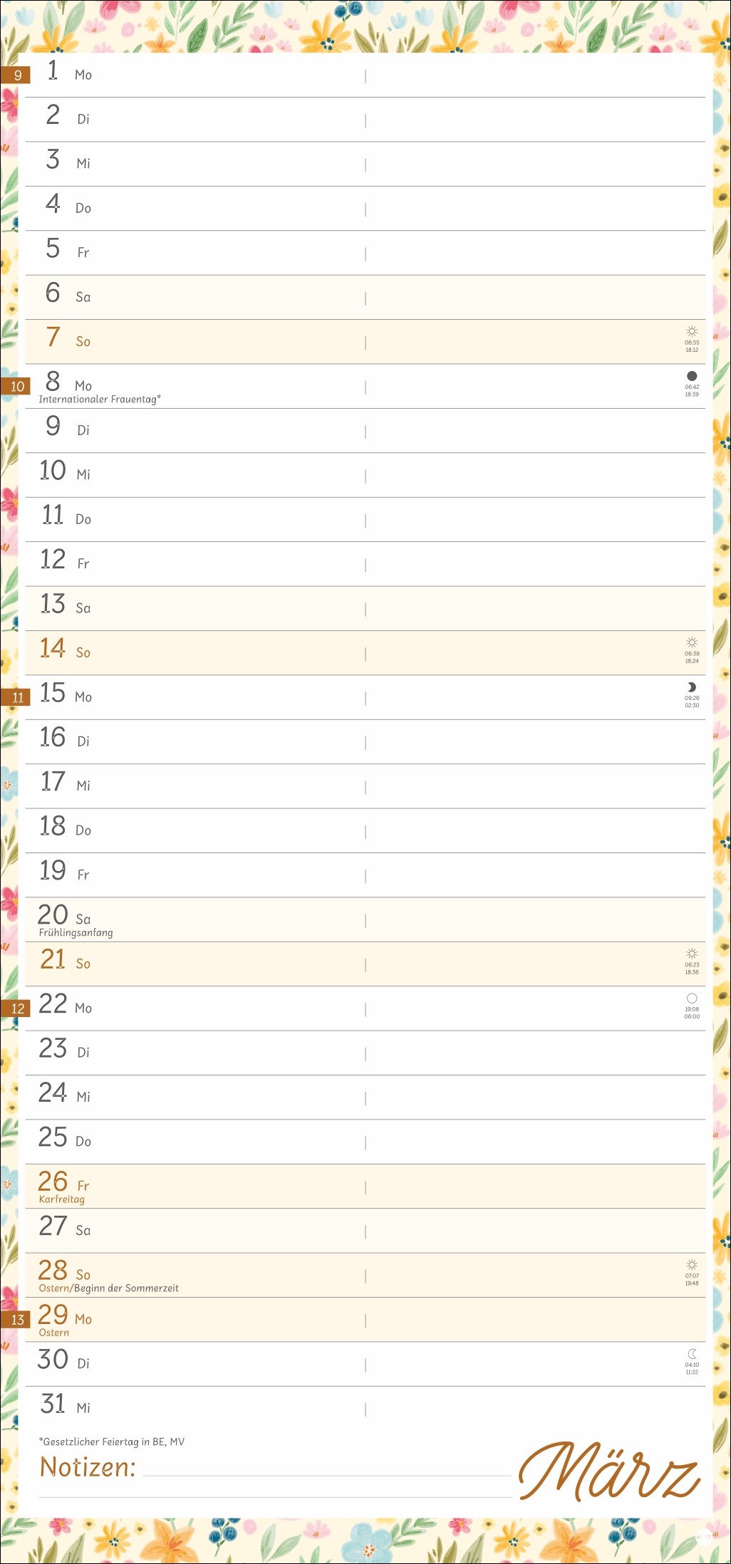 - Der Wandkalender im bunten Blumen-Design sorgt für gute Laune und Übersicht gleichermaßen