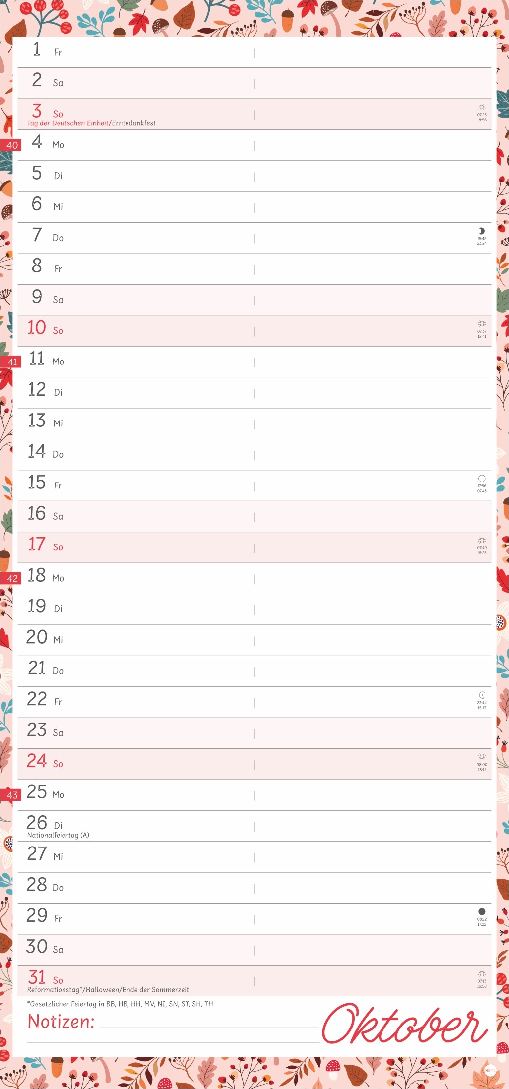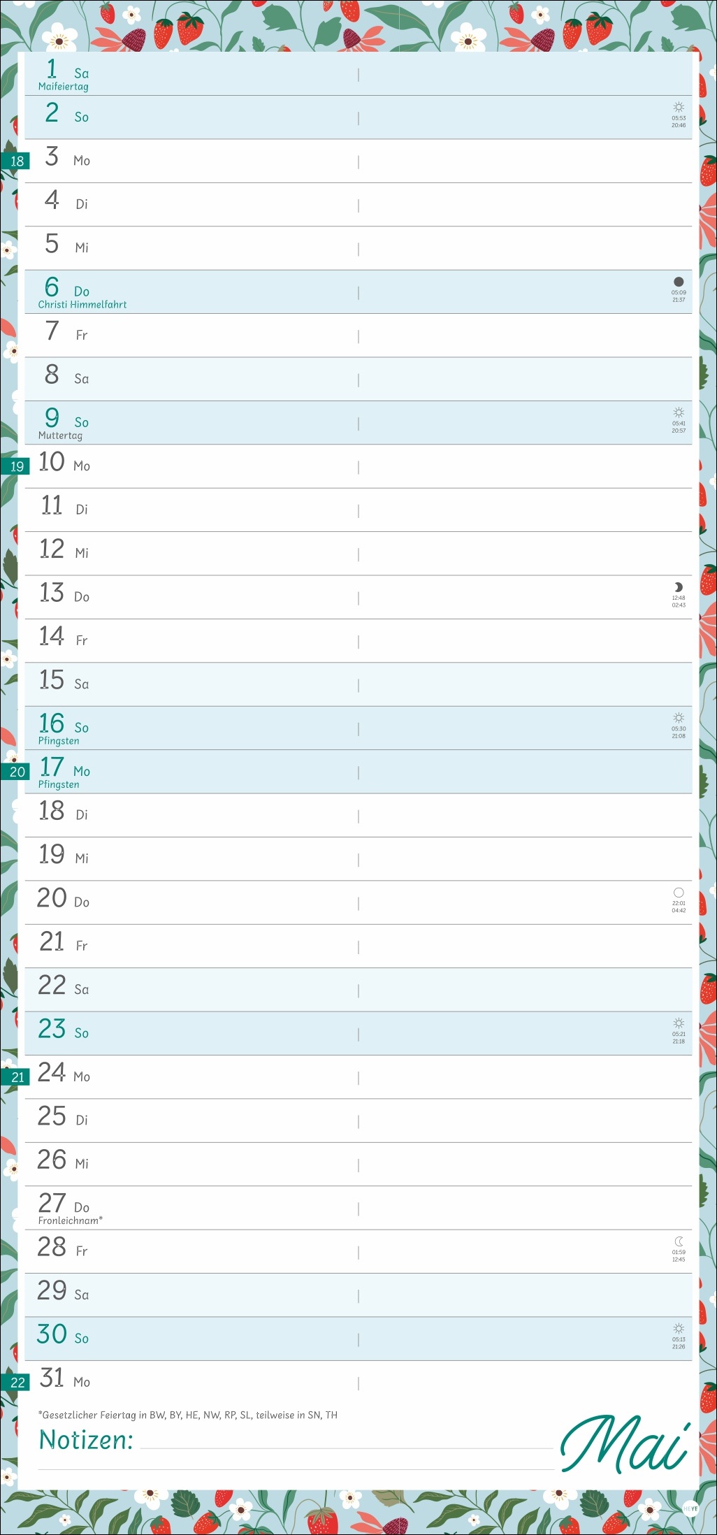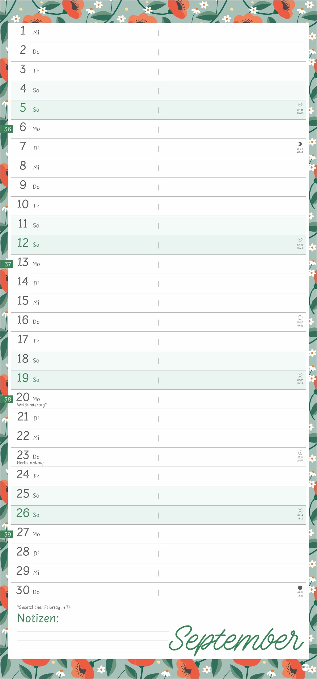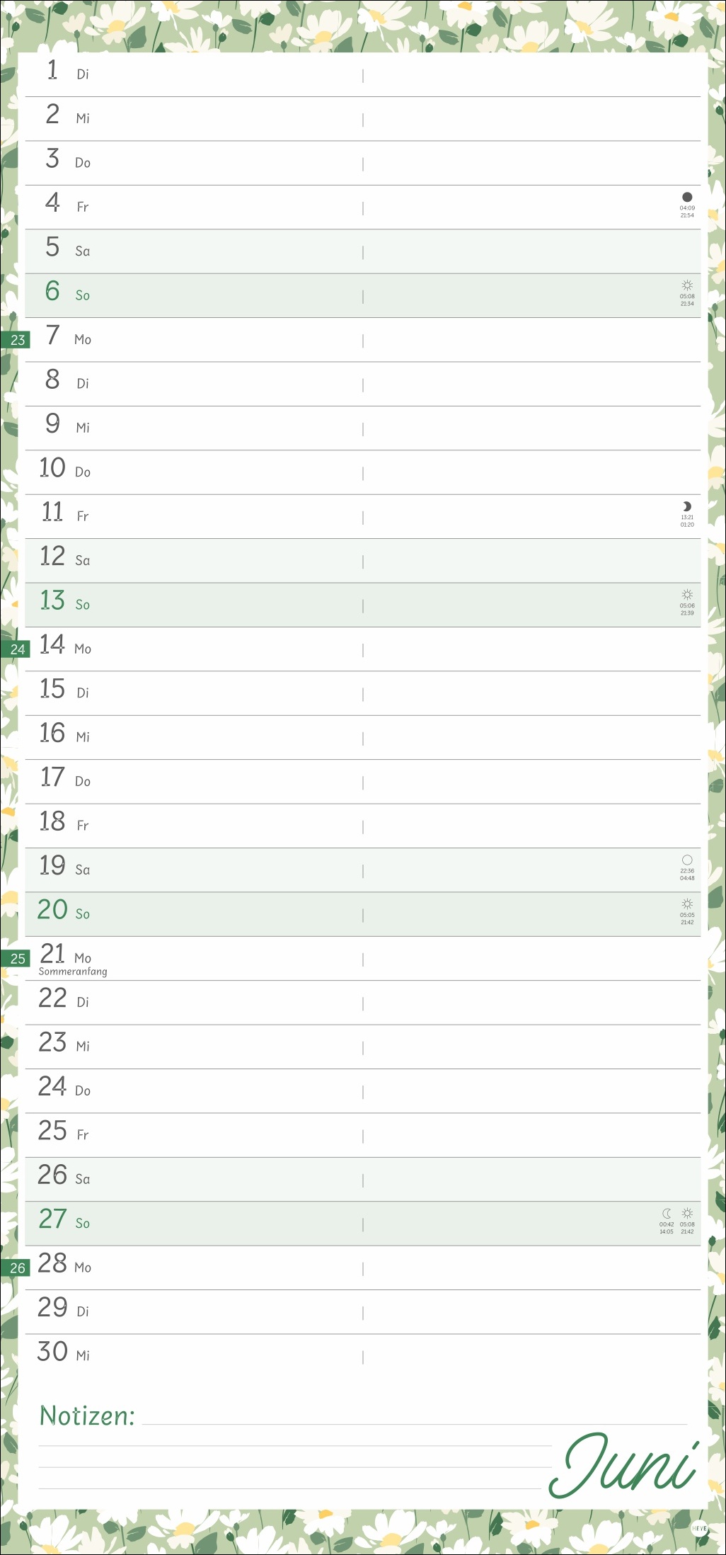 - Viel Platz für Eintragungen und Notizen: Mit diesem Terminplaner im Format 21 x 45 cm behalten Sie immer den Überblick