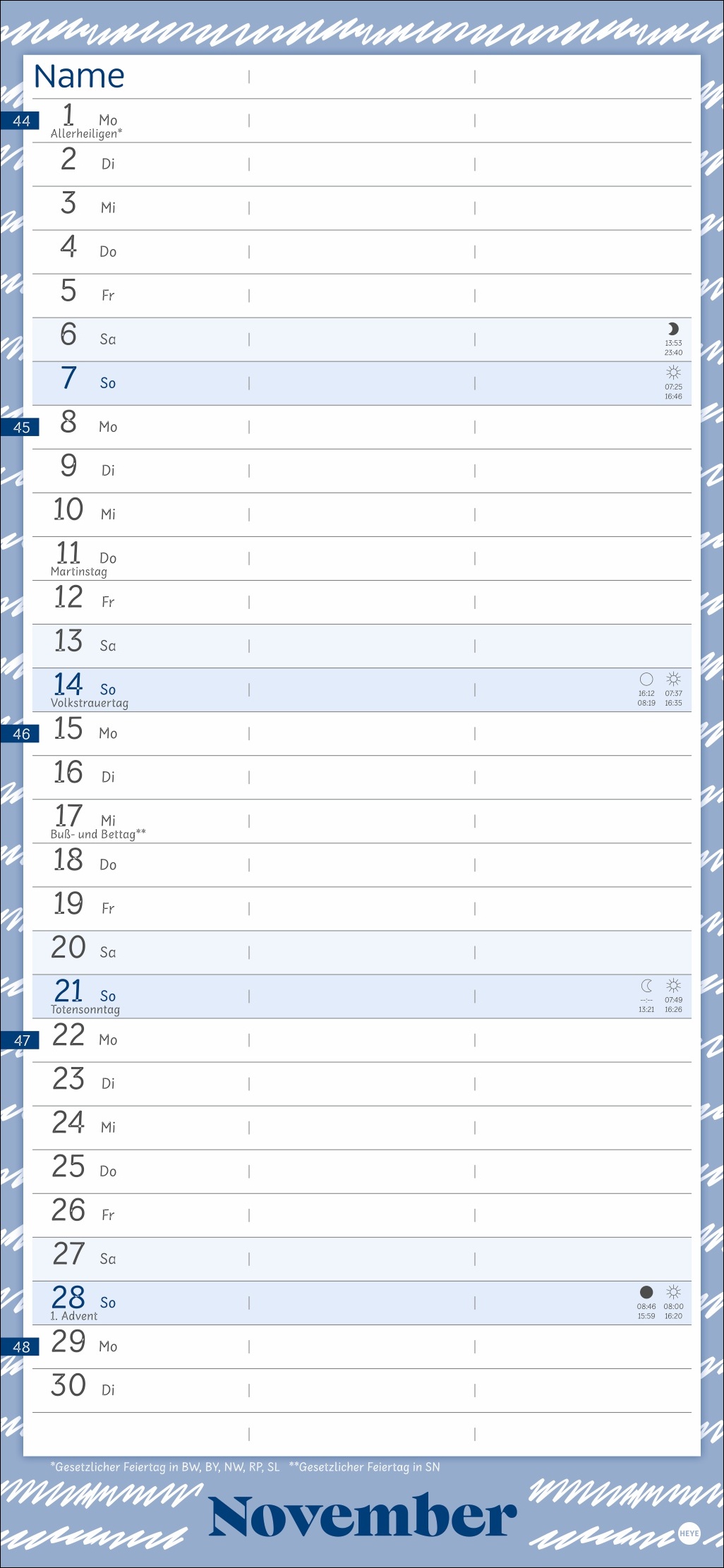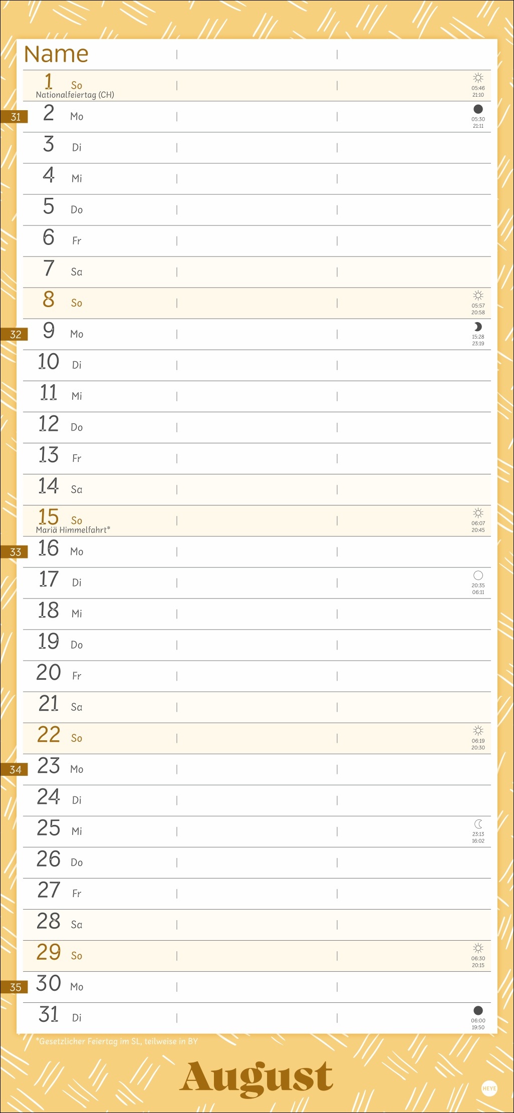 | Kalendarium | Monatskalendarium |