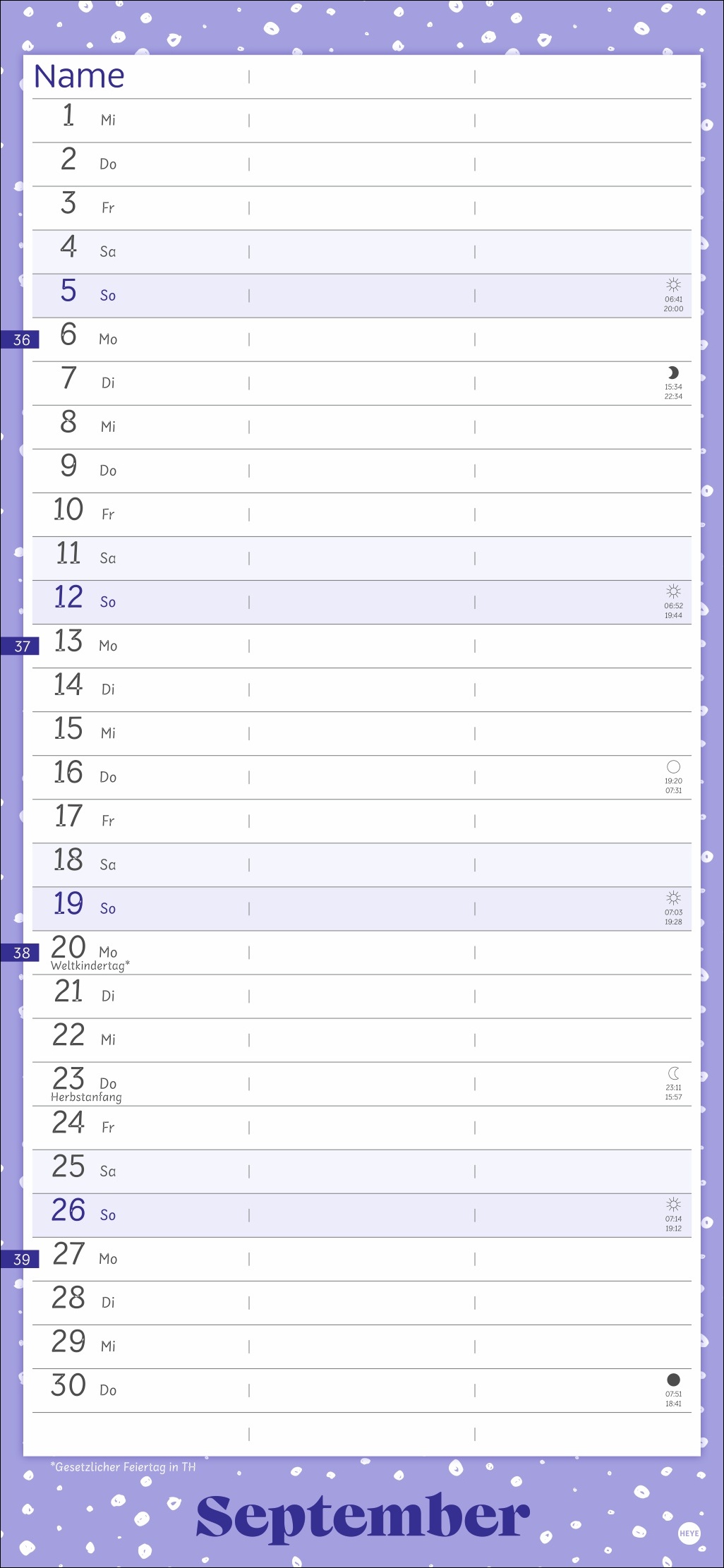 - 3 Spalten für maximale Übersicht: Die Organisationshilfe für Paare braucht wenig Platz, um alles Wichtige unterzubringen
