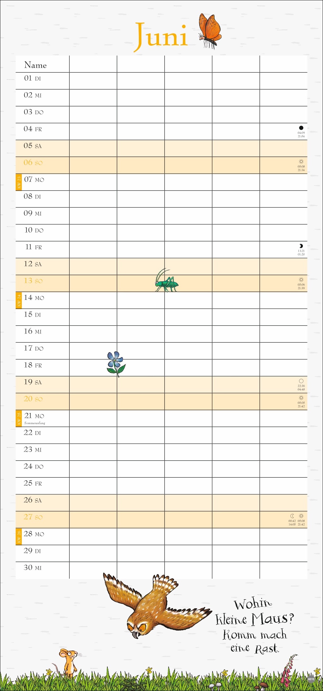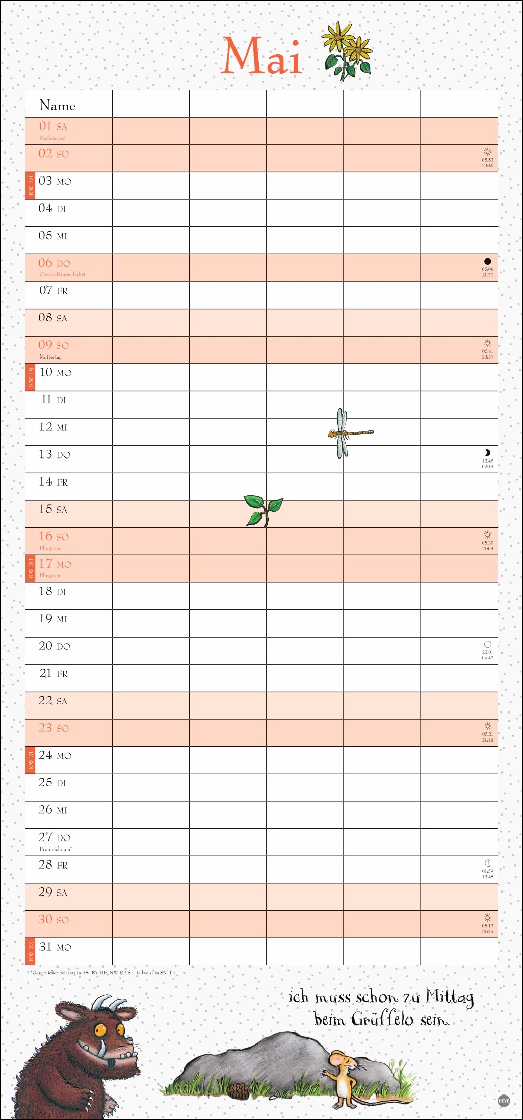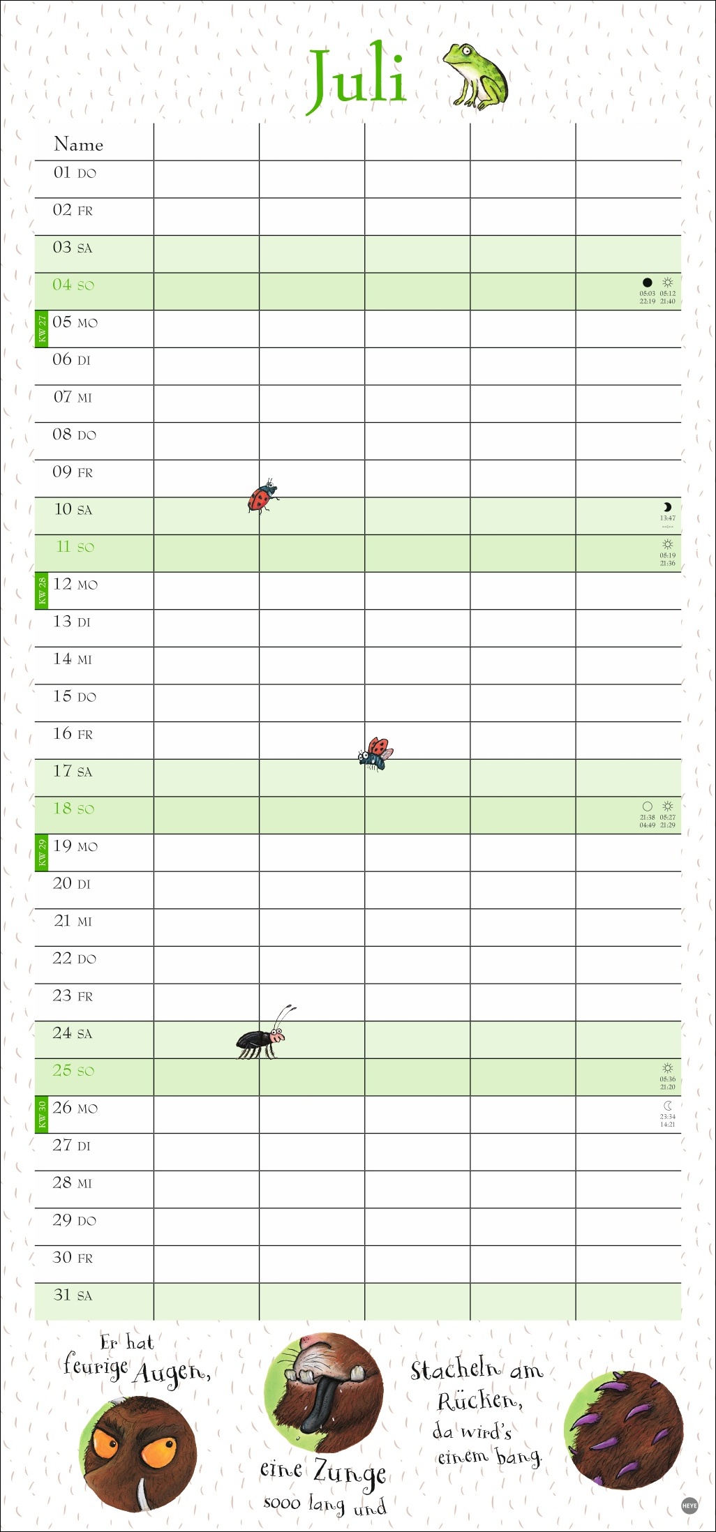 • Das ideale Geschenk für alle kleinen Mäuse und ihre Eltern: Der Grüffelo-Familienkalender mit 5 Spalten und 3-Monatsvorschau aufs Folgejahr