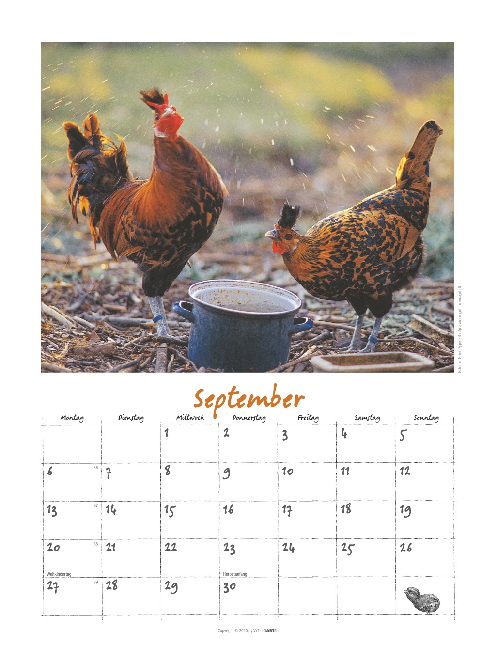 - Neues von Hühnern und Hof: Der Jahres-Wandkalender 2027 vom renommierten Naturfotografen Wolf-Dietmar Unterweger