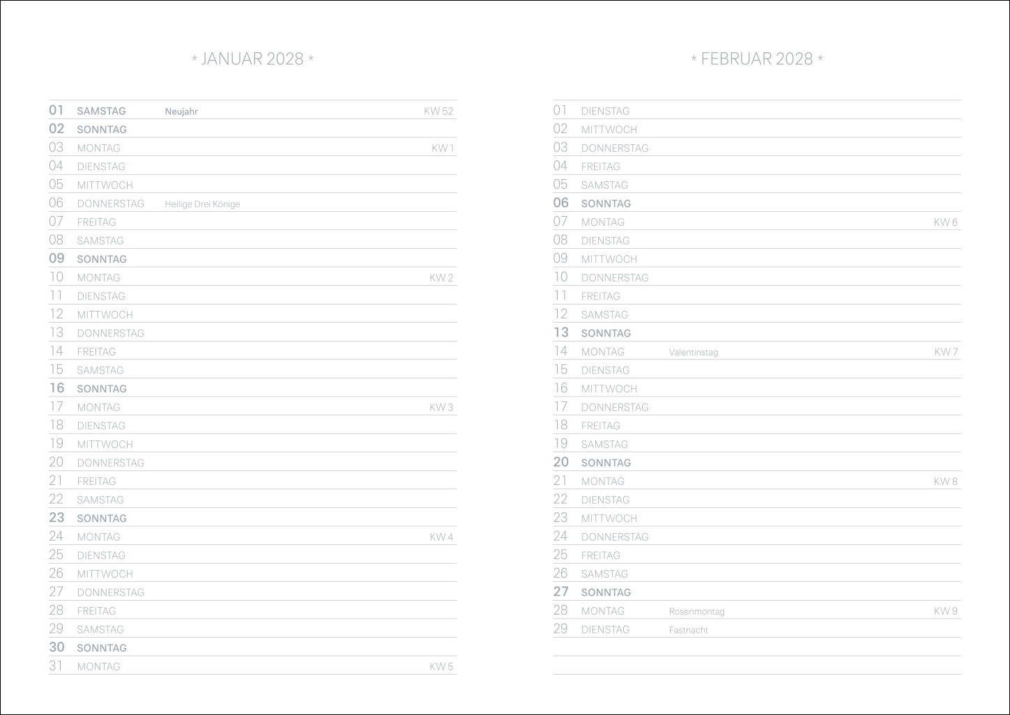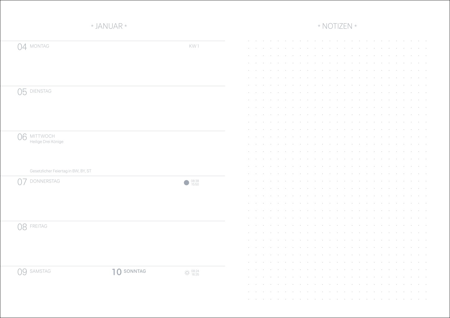 | Kalendarium | Wochenkalendarium |