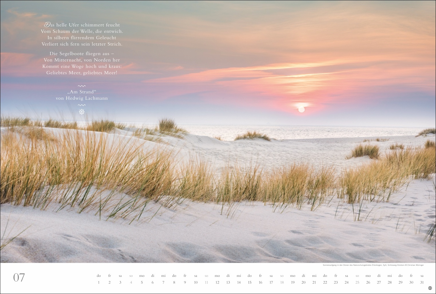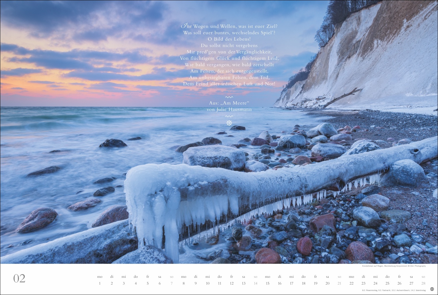 - Poetische Begleiter durch die Monate: Die literarischen Zitate verstärken die emotionale Tiefe der stimmungsvollen Meeresaufnahmen