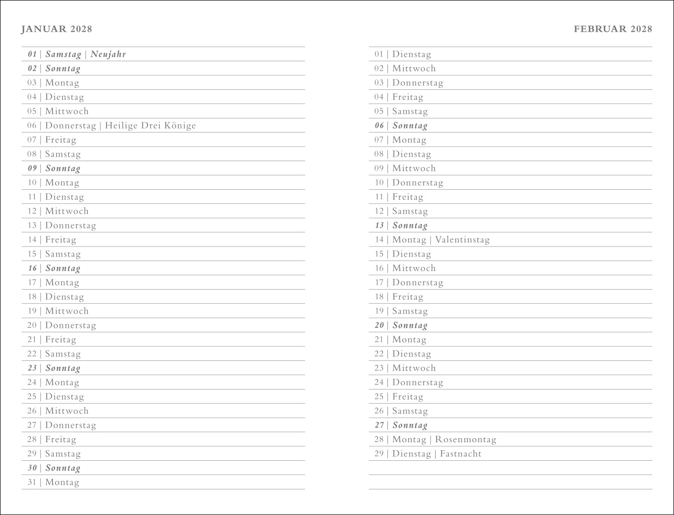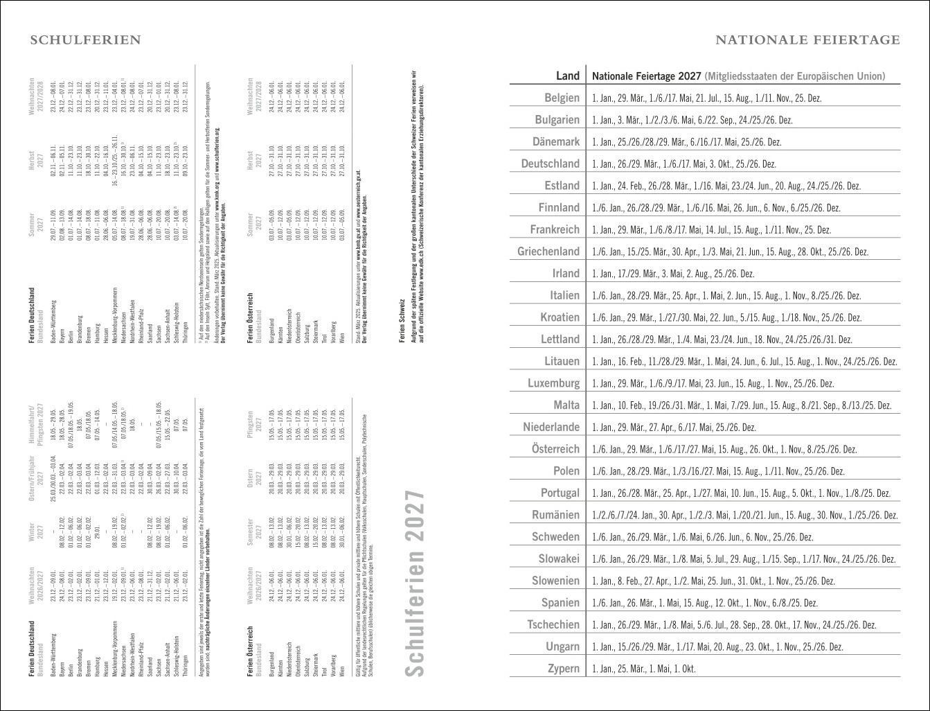 • Mit zahlreichen Extras wie Jahresübersicht, Vorausschau auf 2028, Schulferien, Adressbuch und To-do-Listen