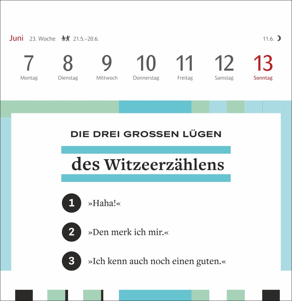 - Für alle Fans von Satire und feinem Humor: Der Postkarten-Kalender mit Wochenkalendarium, Feiertagen, Sternzeichen und Mondphasen