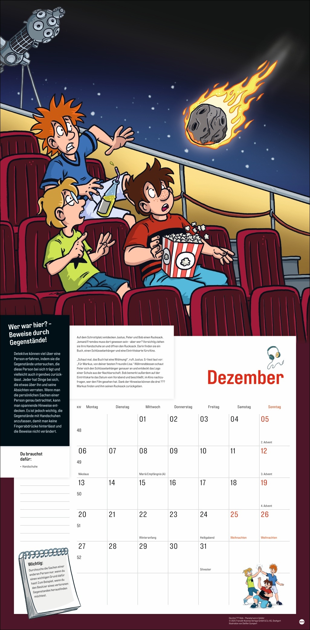 - Beliebtes Trio: Wandplaner mit tollen Extras wie Poster zum Herausnehmen und monatlich neuen Detektiv-Tricks und Geschichten