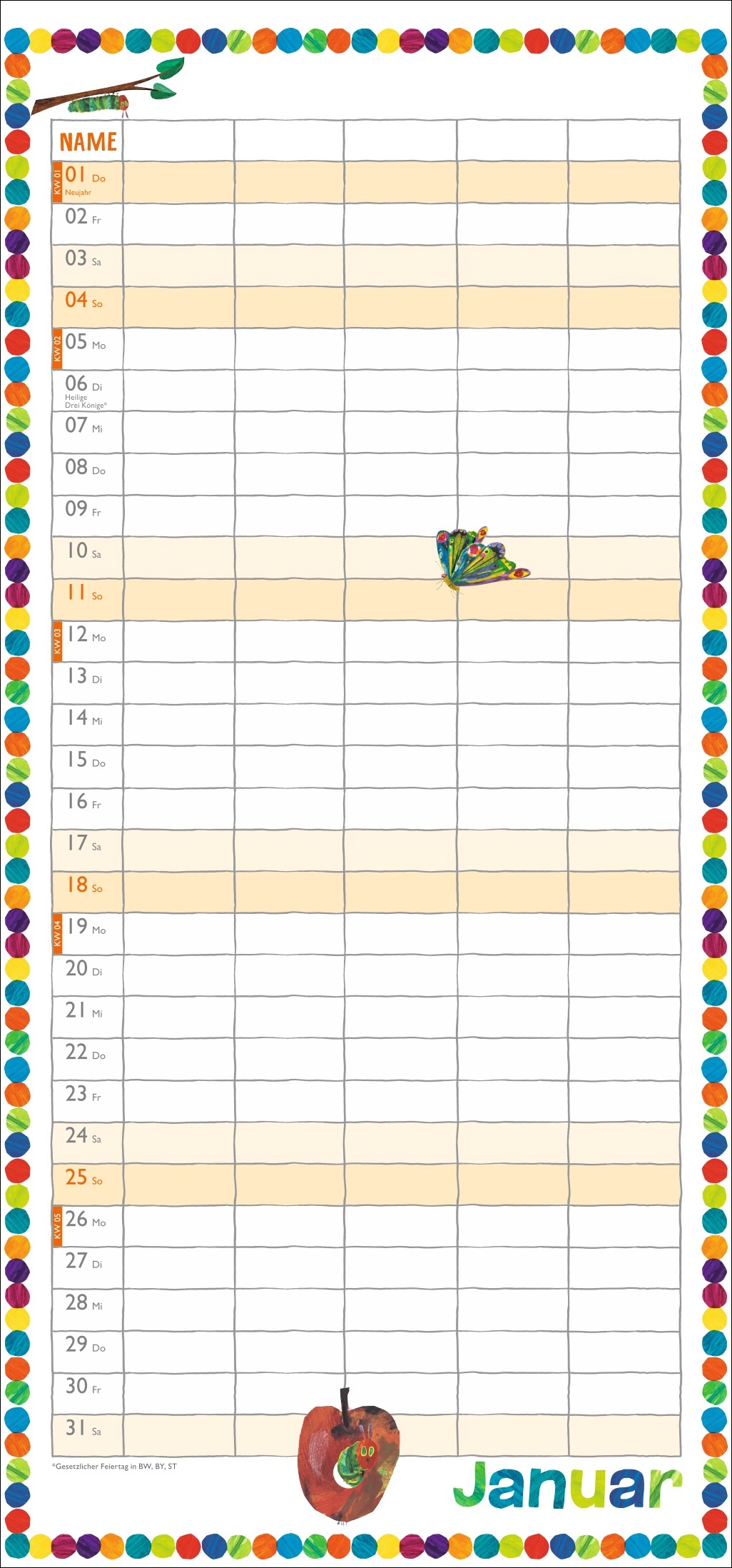 Die kleine Raupe Nimmersatt Familienplaner 2026