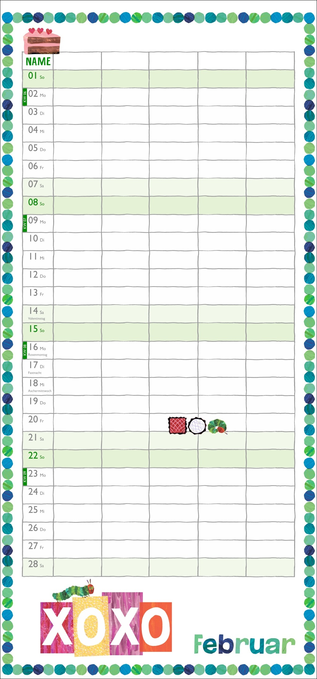 - Frisst garantiert keine Termine: Die kleine Raupe Nimmersatt im Familienkalender 2026