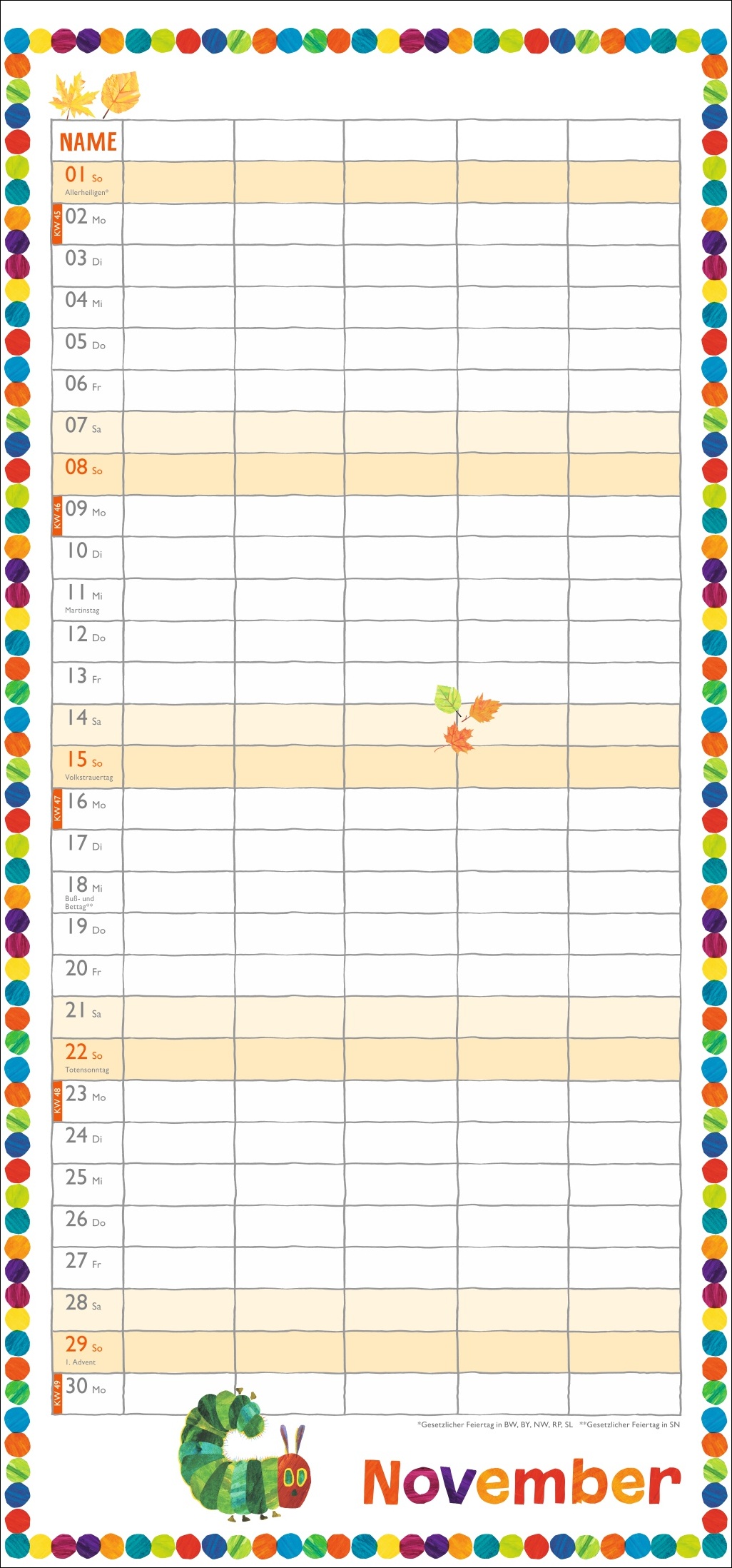 - Mehr Platz und Überblick in unseren erfolgreichen Familienplanern: 5 Spalten für Arzttermine, Ferien- und Freizeitaktivitäten