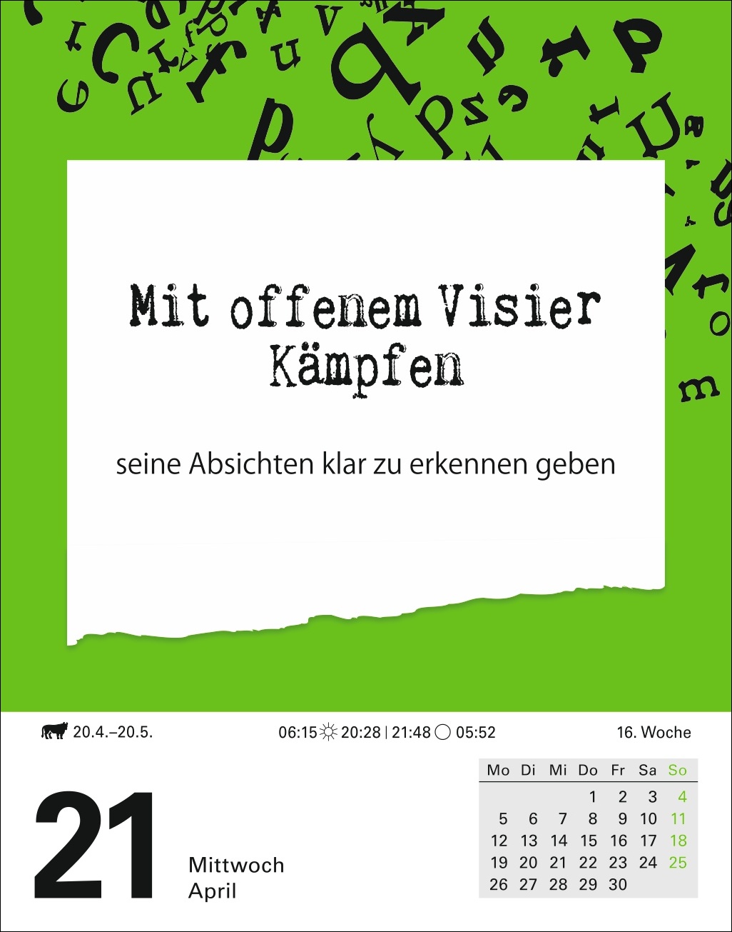 - Unterhaltsamer Tageskalender mit spannenden Geschichten und Anekdoten rund um Wortursprünge, Sprachentwicklung und Bedeutungswandel
