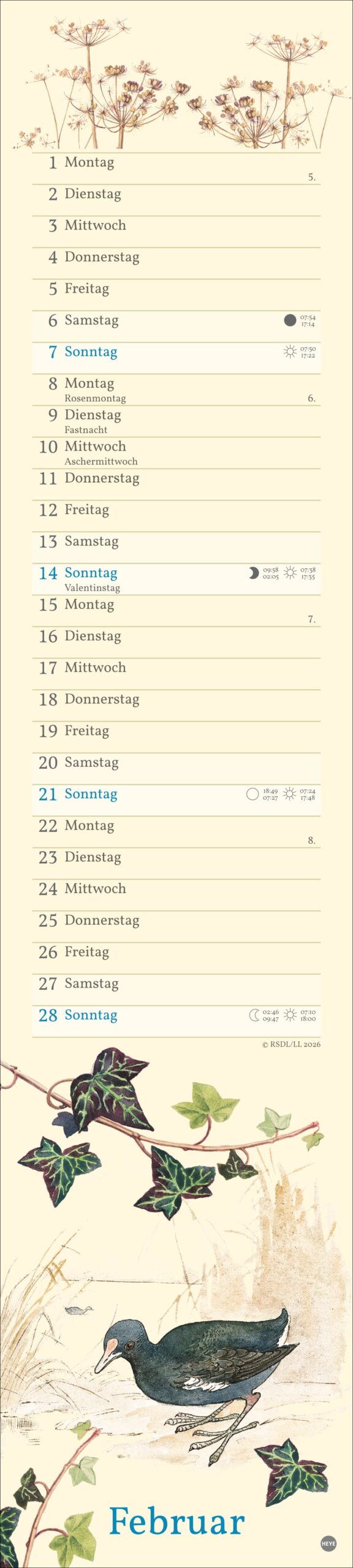 - Übersichtlich und klar strukturierter Streifenkalender: die schönen Tier- und Pflanzenzeichnungen sorgt dafür, dass Sie keinen Termin übersehen