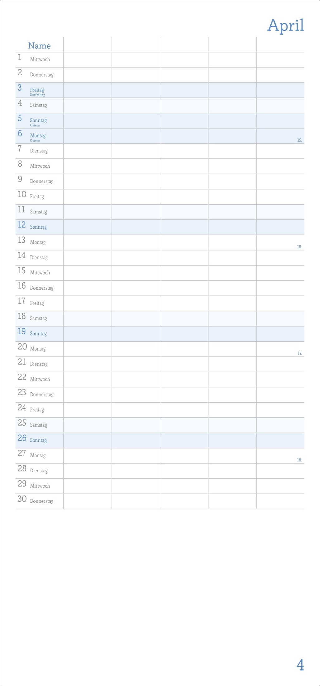 - Macht Lust aufs Planen: Übersichtlicher Familienplaner im Format 21 x 45 cm mit 5 Spalten, Schulferien und genügend Platz für Ihre Eintragungen