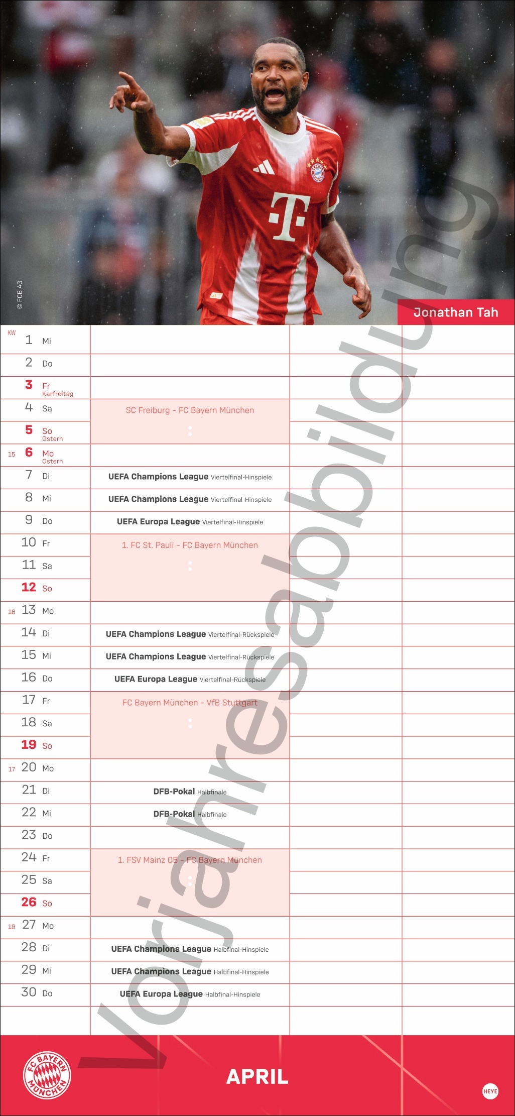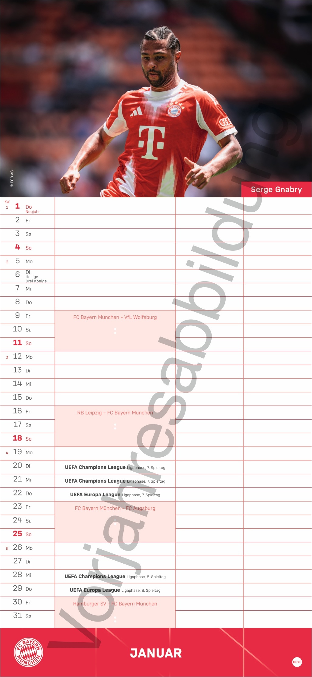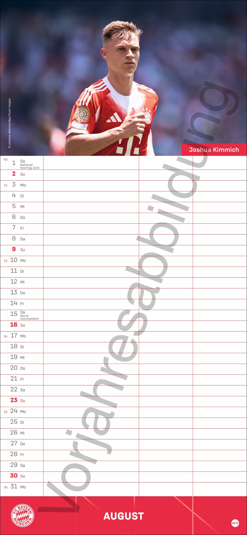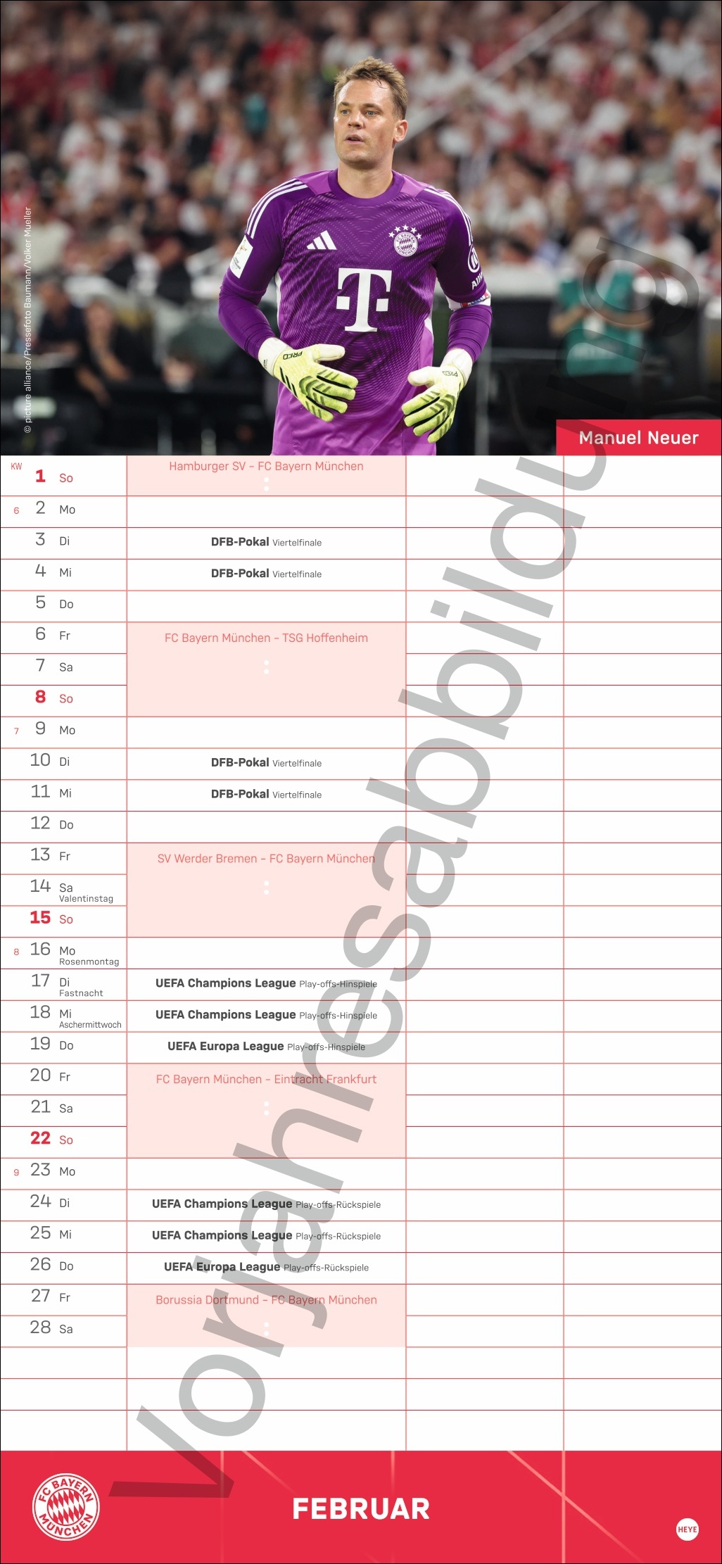 - Besser planen mit den Fußball-Stars des Rekordmeisters: Monatlich neue Porträts von Neuer, Kimmich und Co.