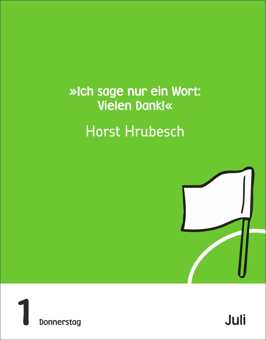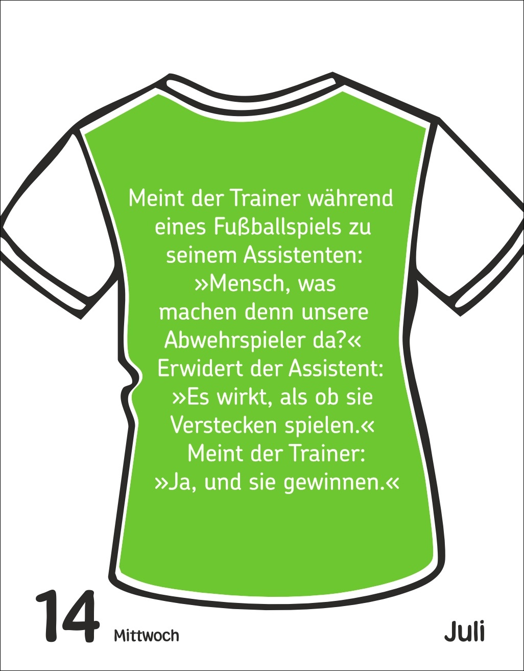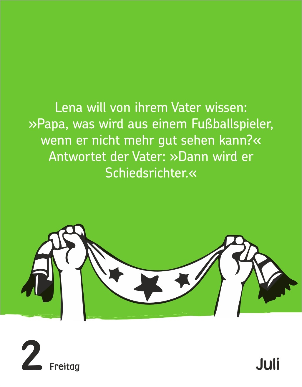 - Täglich coole Fußball-Sprüche: Dieser Fußball-Kalender sorgt mit 313 schrägen Weisheiten, Witzen und kuriosen Fußballfakten für gute Laune