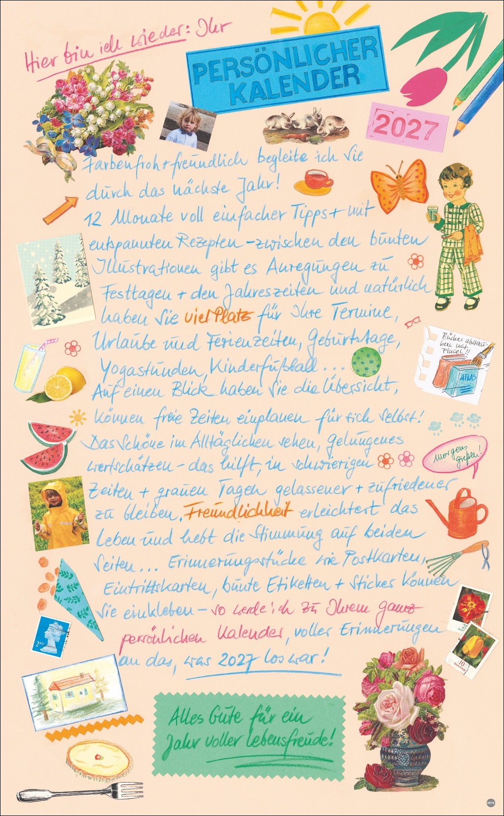 • Macht gute Laune: mit Handschrift gestalteter, fröhlich-bunter Broschurkalender