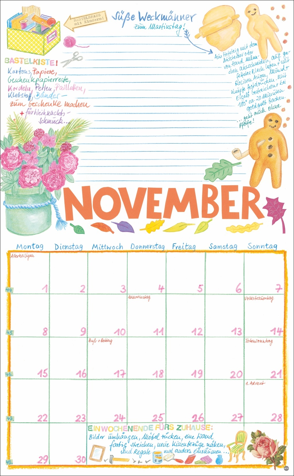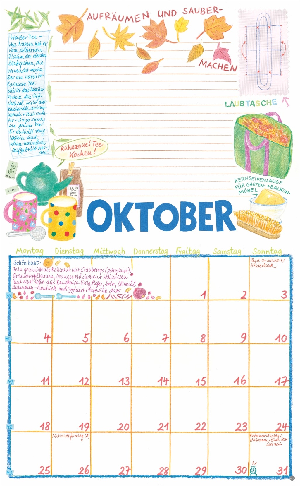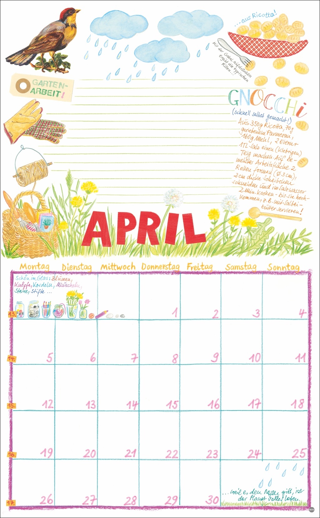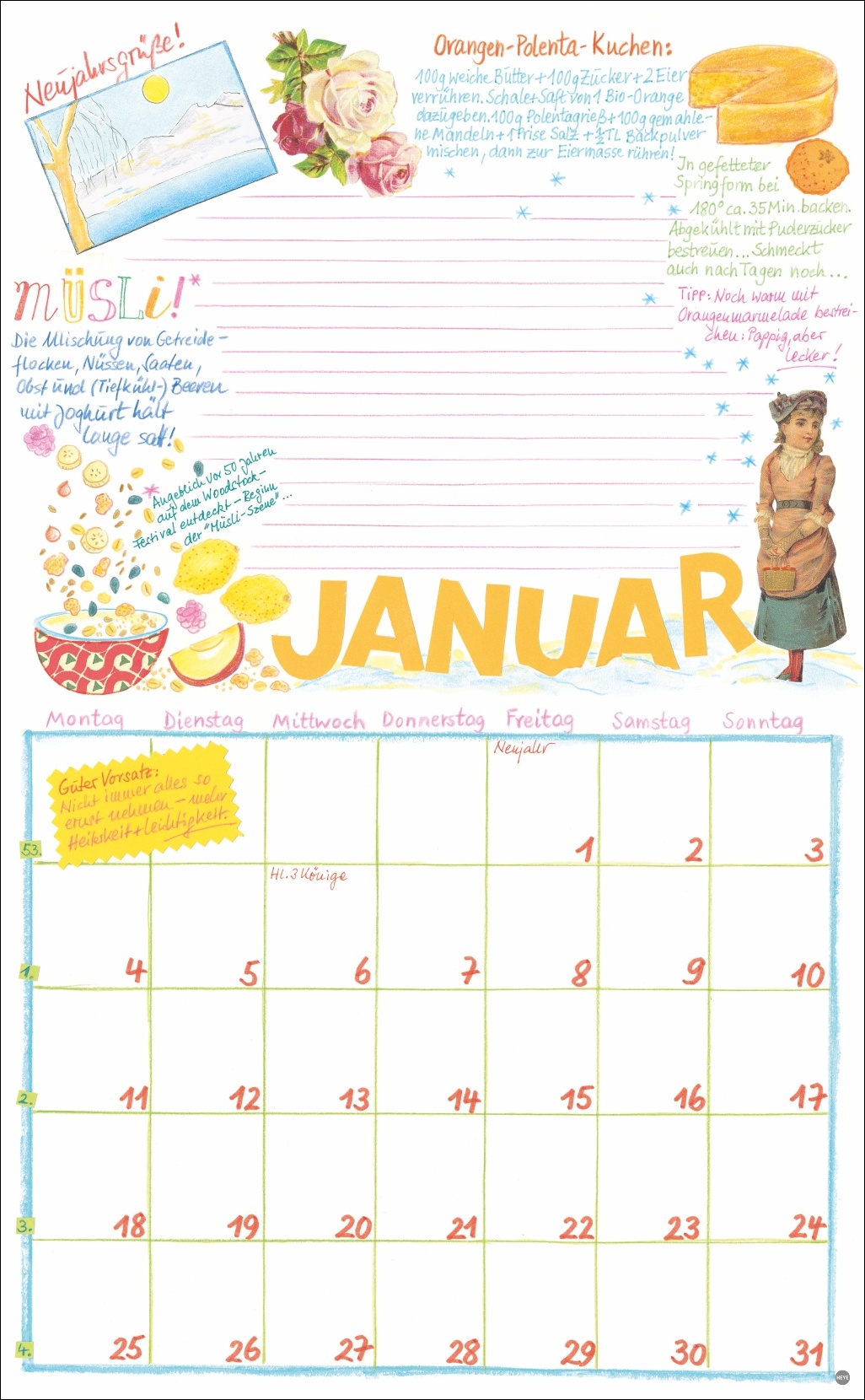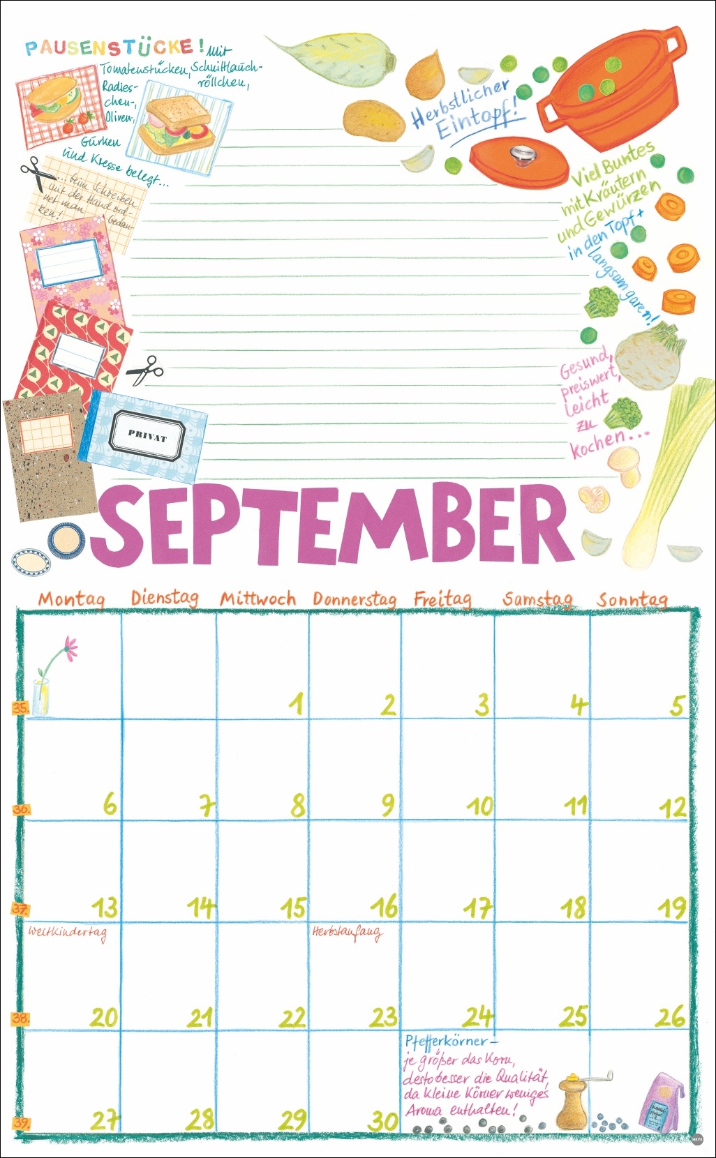 • Die Organisationshilfe mit dem gewissen Extra: Jeden Monat neue, unverwechselbar schöne Illustrationen aus dem Atelier Kohwagner