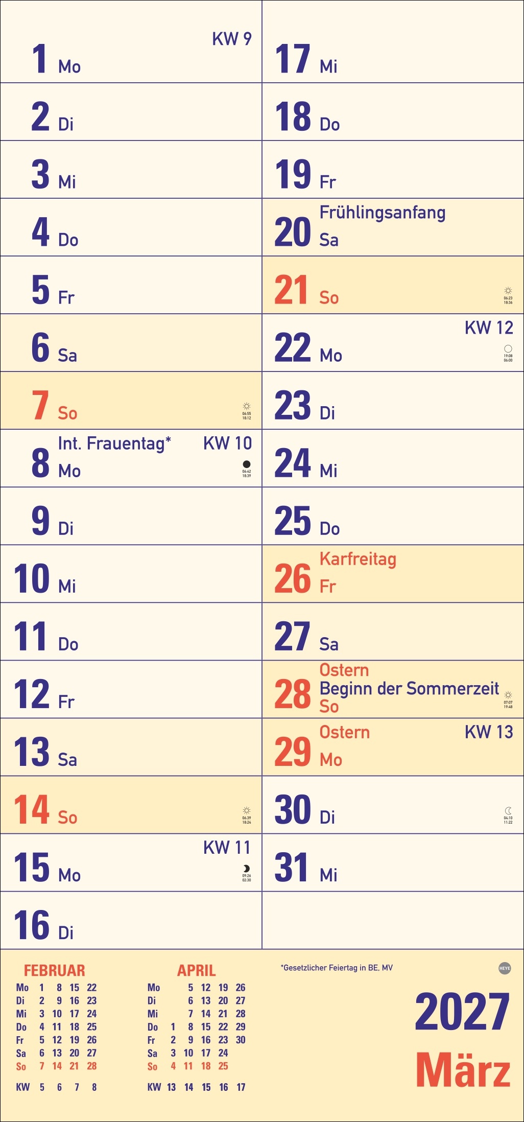 - Der praktische Single-Planer im 21 x 45 cm Hochformat: Kalender mit Schulferien-Übersicht und 3-Monats-Vorschau auf das neue Jahr