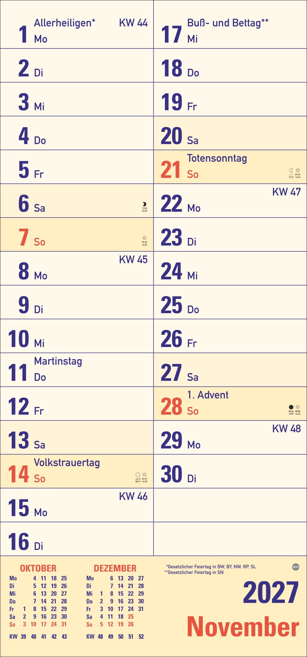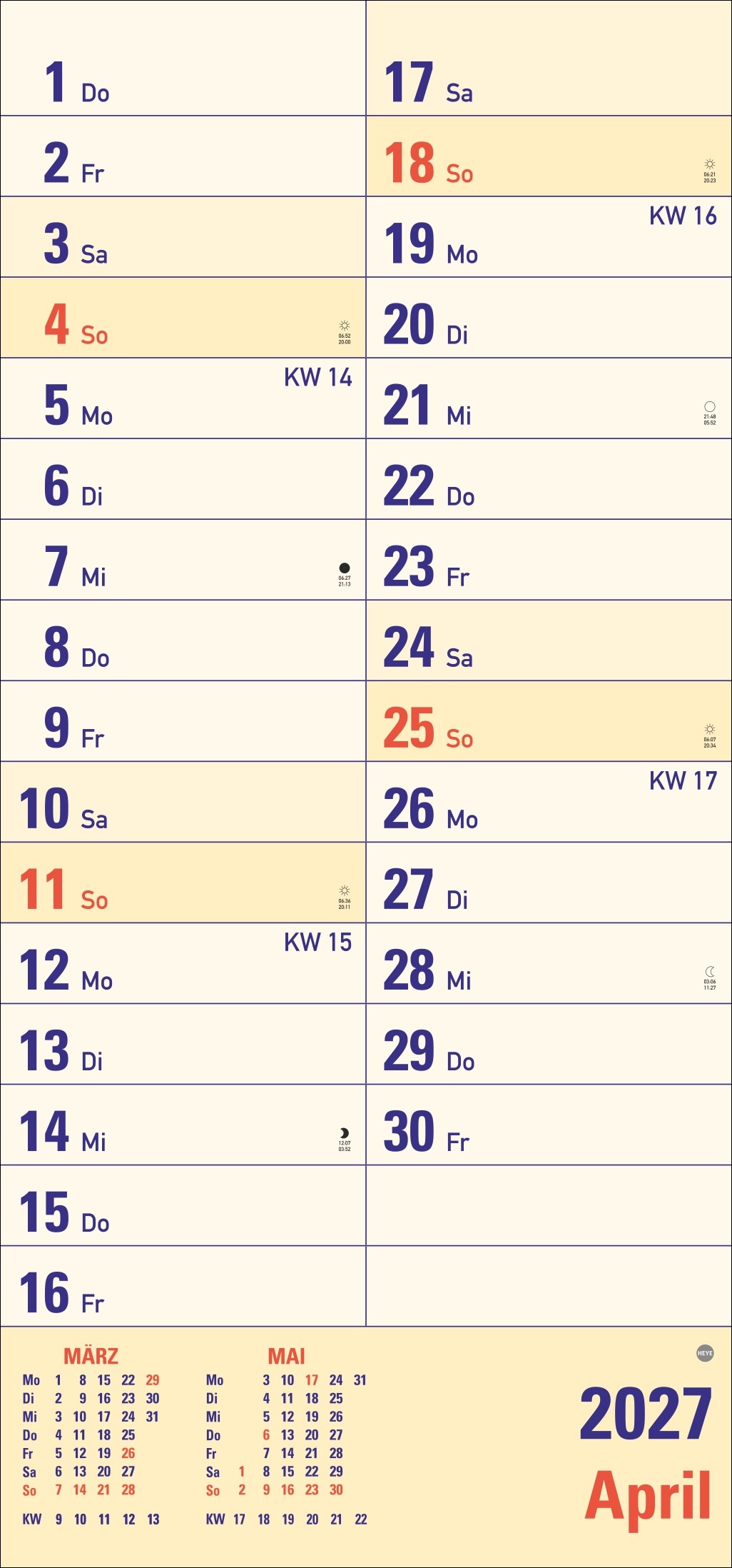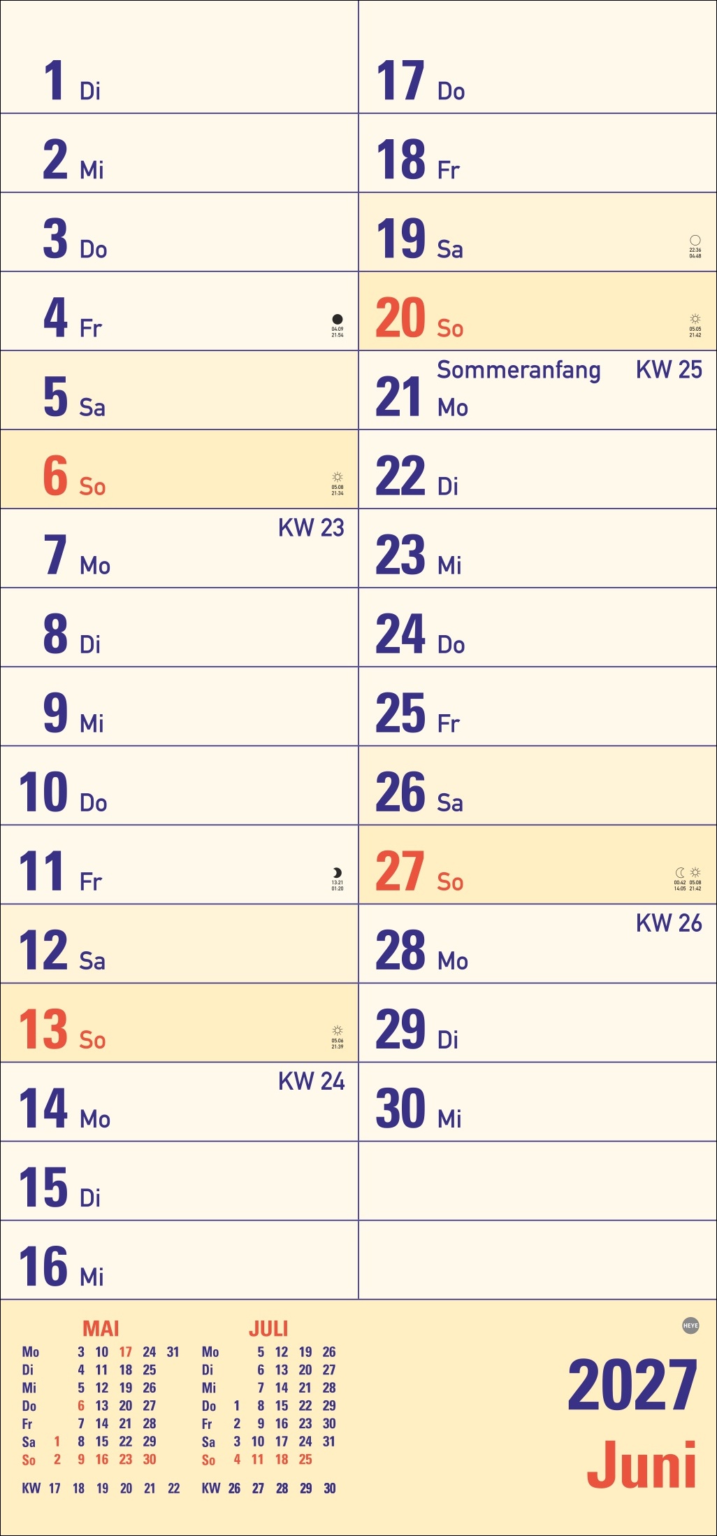 - Immer den Überblick behalten: Monatskalender – groß gedruckt und mit breiten Spalten für eine gute Lesbarkeit