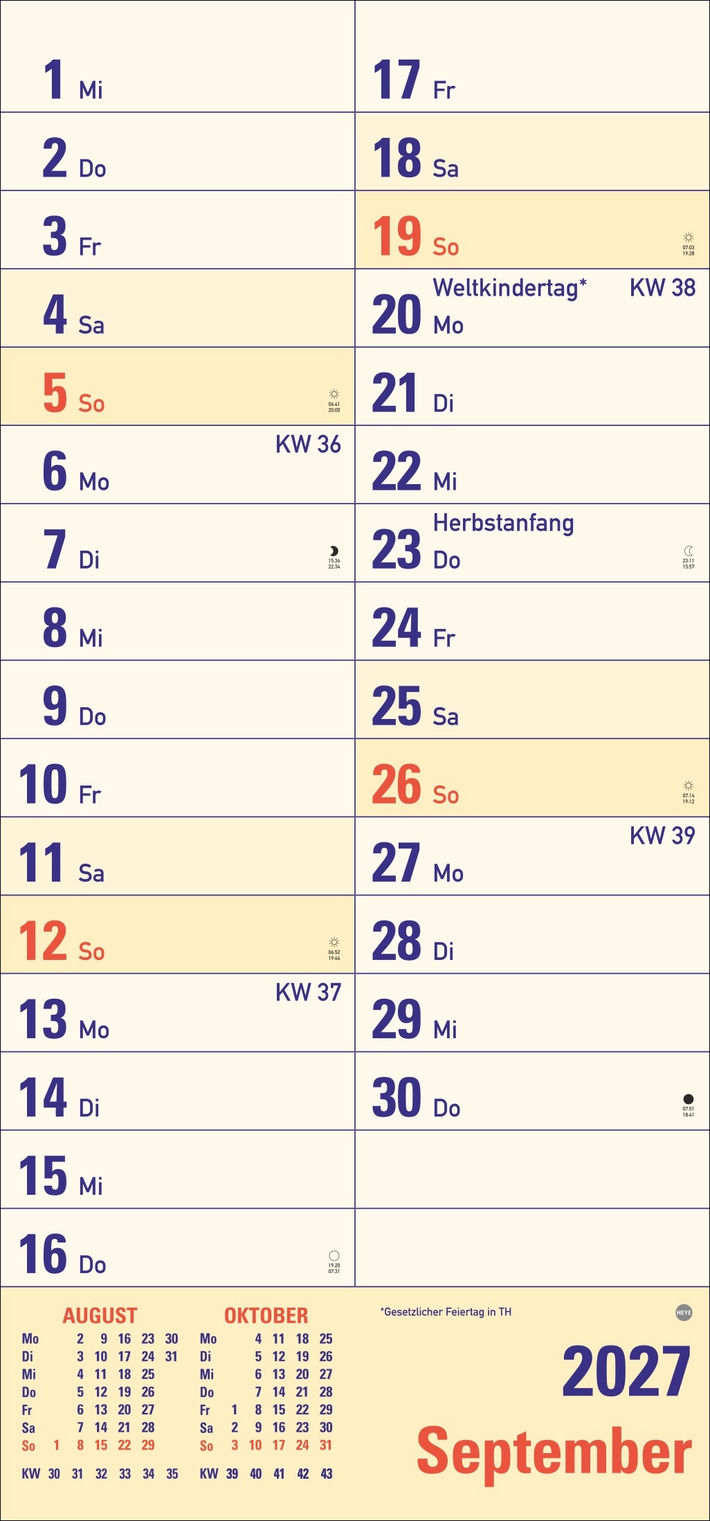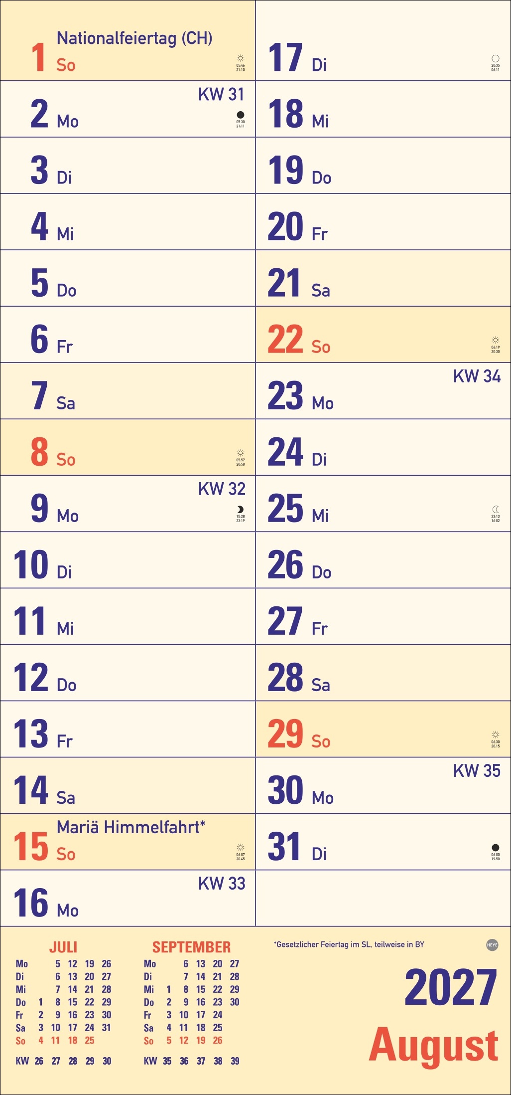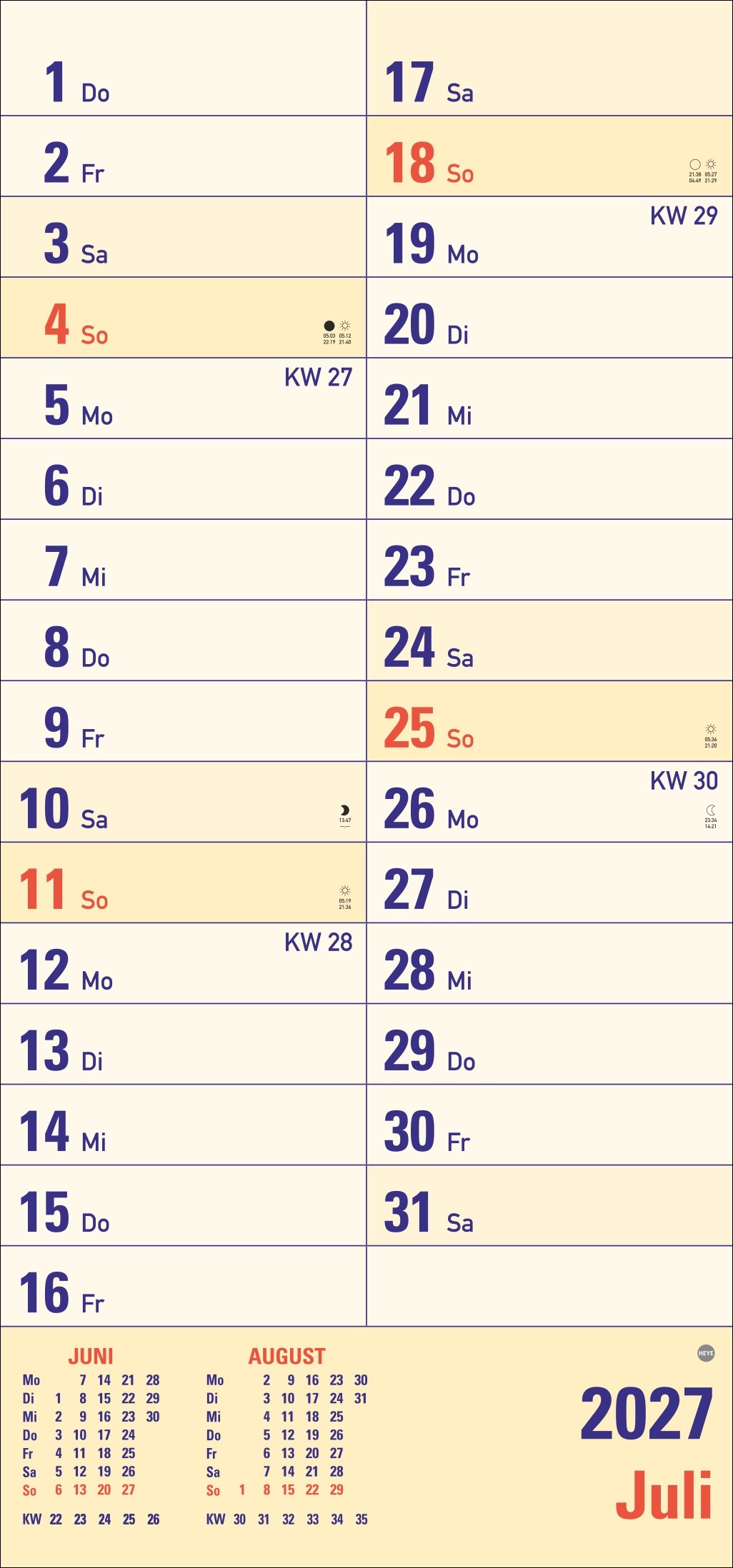 - Immer den Überblick behalten: Monatskalender – groß gedruckt und mit breiten Spalten für eine gute Lesbarkeit