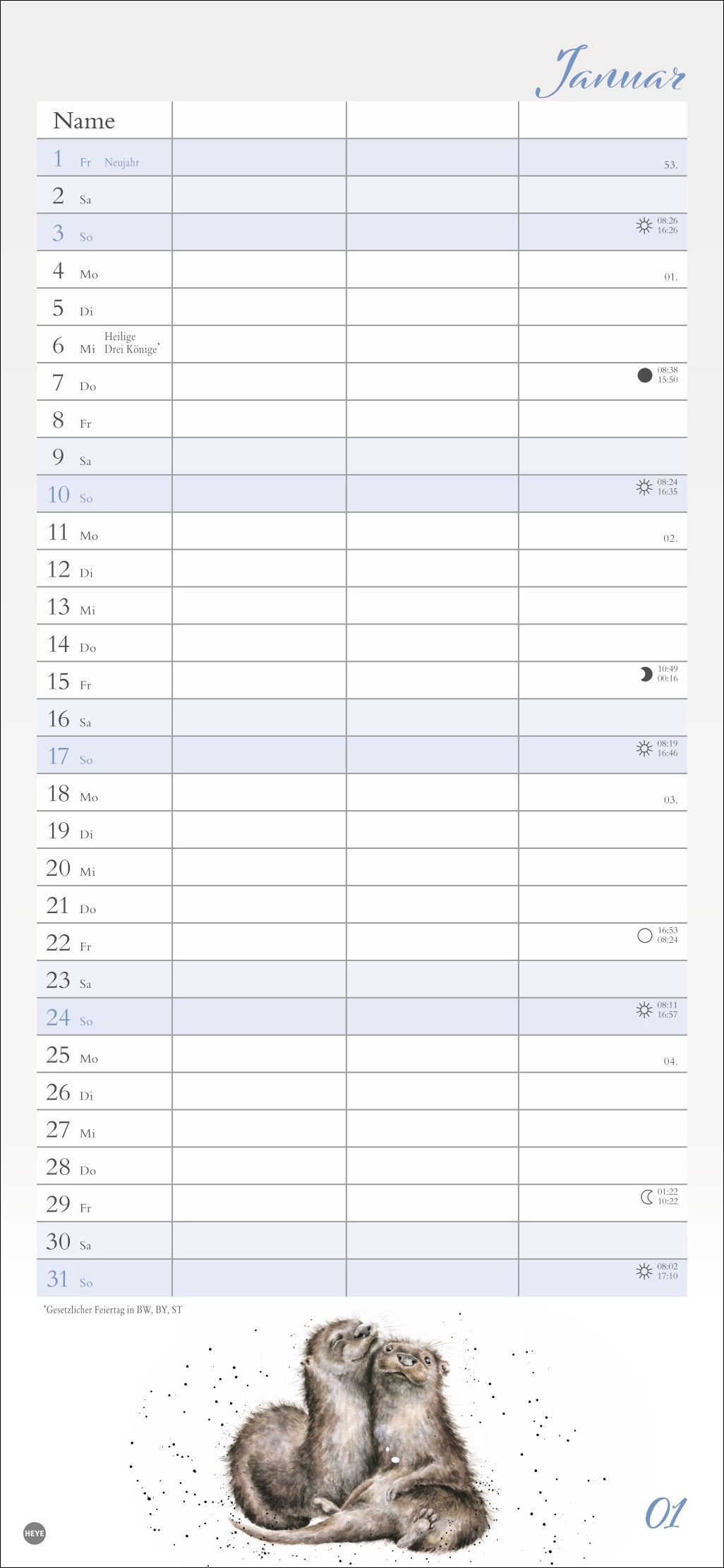 - Drei Spalten für Termine: Der Paarkalender 2027 vereint Funktionalität mit schönen Tierbildern