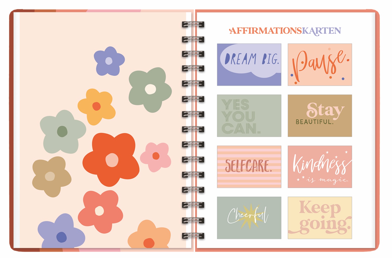 - Außerdem hat es verstärkte Monats-Registerblätter, Jahresübersichten für 2026 und 2027, Monatsvorschauen mit Notizen, To-dos und Wichtiges, 16 Affirmationskarten, 1 Stickerbogen und noch vieles mehr!