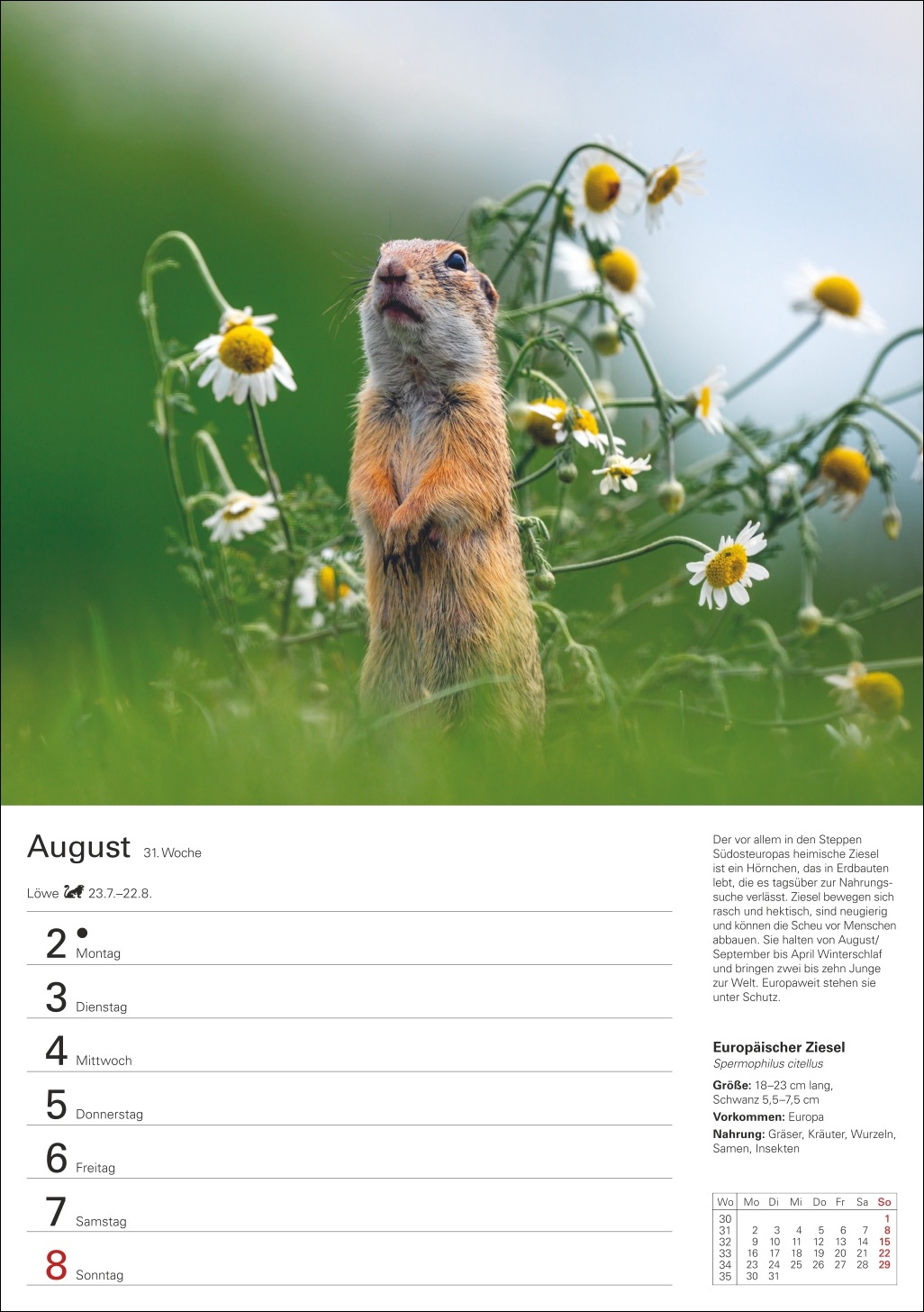 - Der Terminkalender im Format 25 x 35,5 cm mit hochwertigen Aufnahmen bekannter Fotografen ist ein Must-Have für Tierfreunde