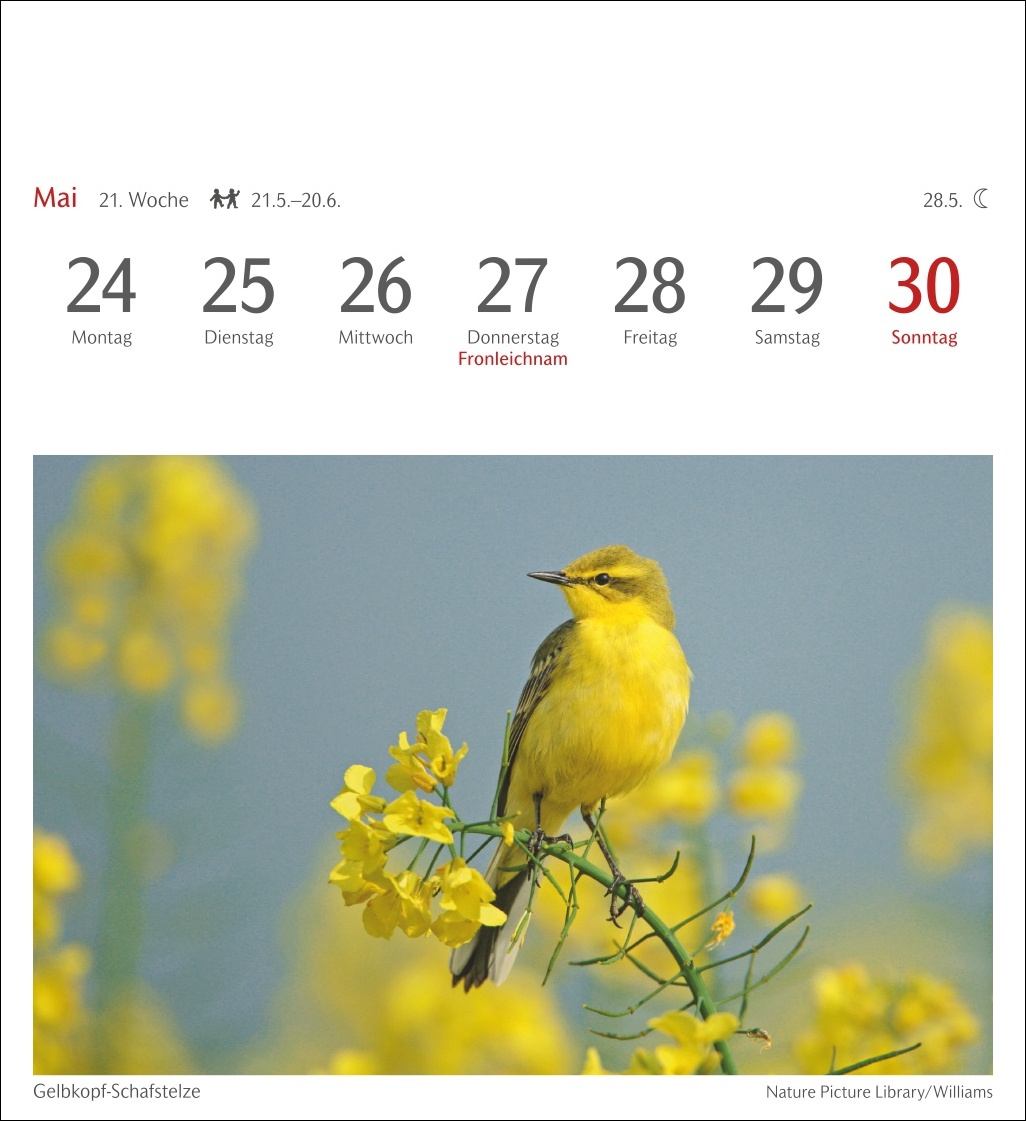 - Bringt die bunte Vogelwelt Deutschlands und Europas in Ihr Zuhause: Der kleine Kalender im Postkartenformat stellt Woche für Woche einen neuen Piepmatz vor