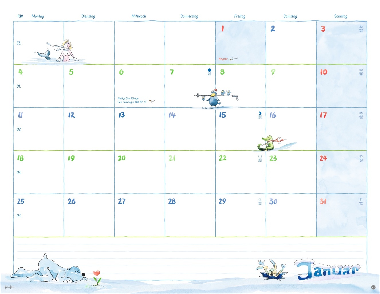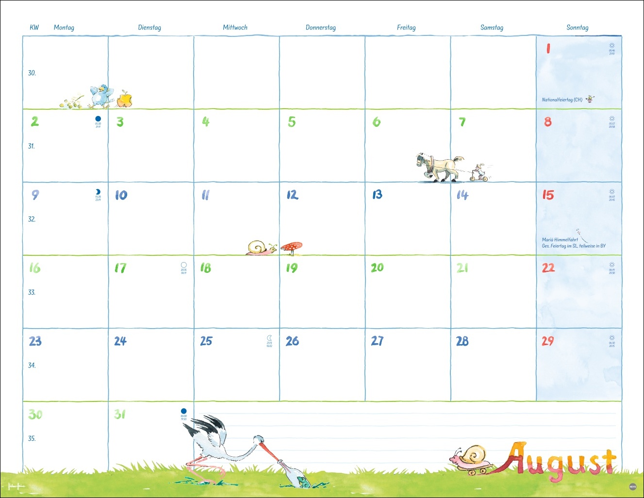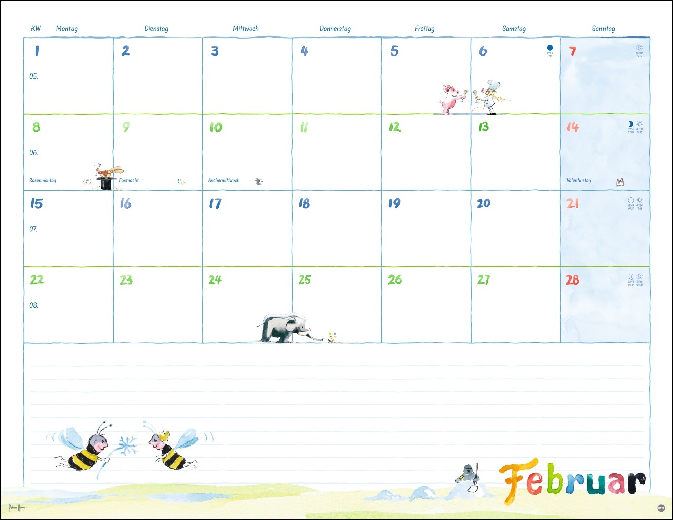 • Das Format 44 x 34 cm bietet viel Platz für Eintragungen und kunterbunte Illustrationen von Helme Heine