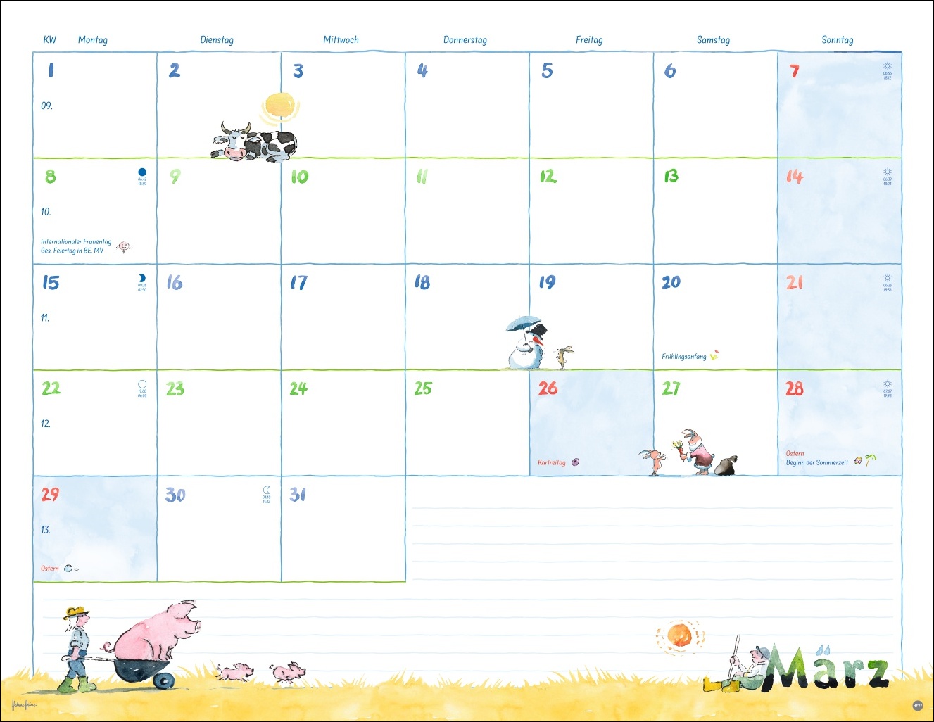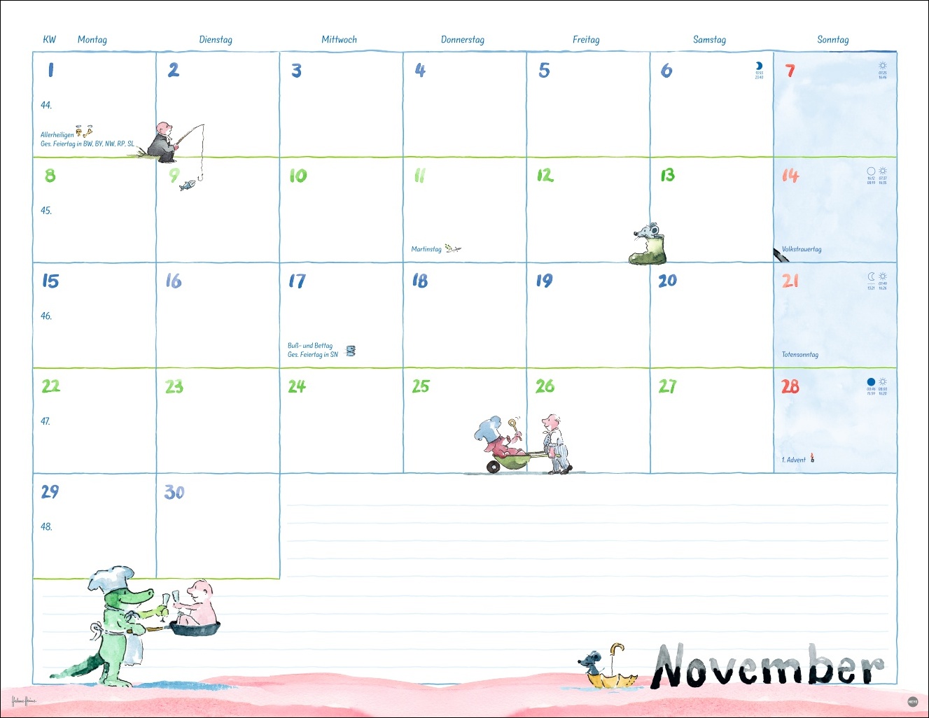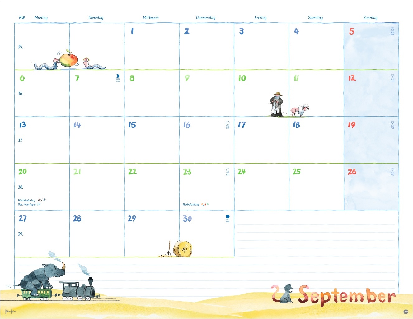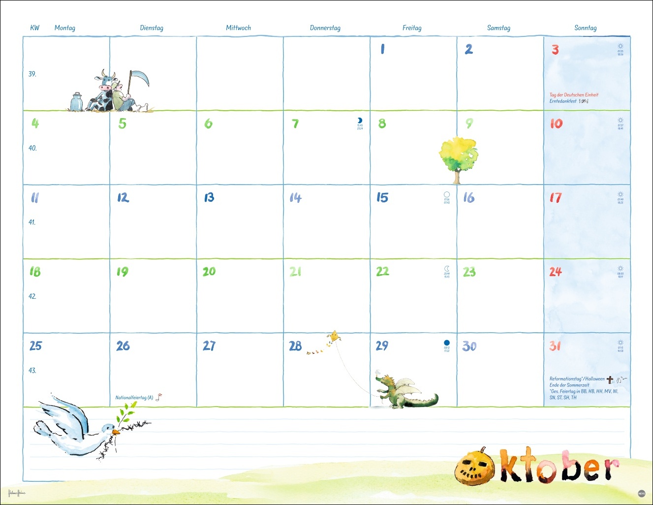 • Das Format 44 x 34 cm bietet viel Platz für Eintragungen und kunterbunte Illustrationen von Helme Heine