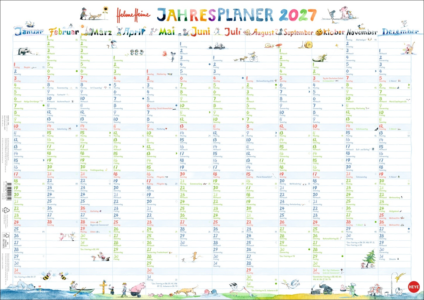 - Schöner planen mit Johnny Mauser, Franz von Hahn und dem dicken Waldemar: Das Jahresplaner-Poster für Helme-Heine-Fans