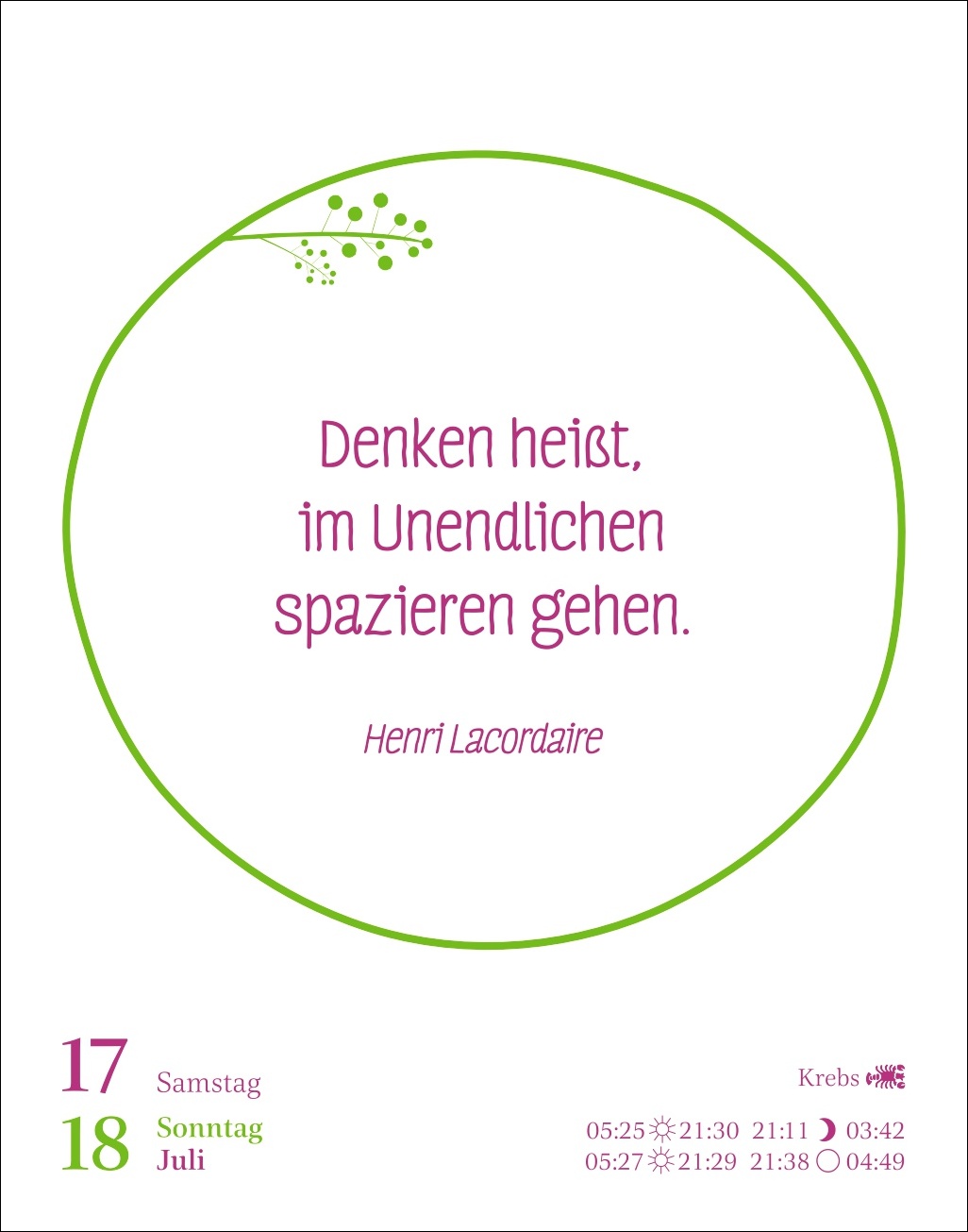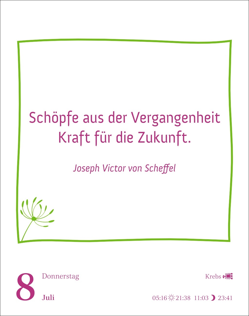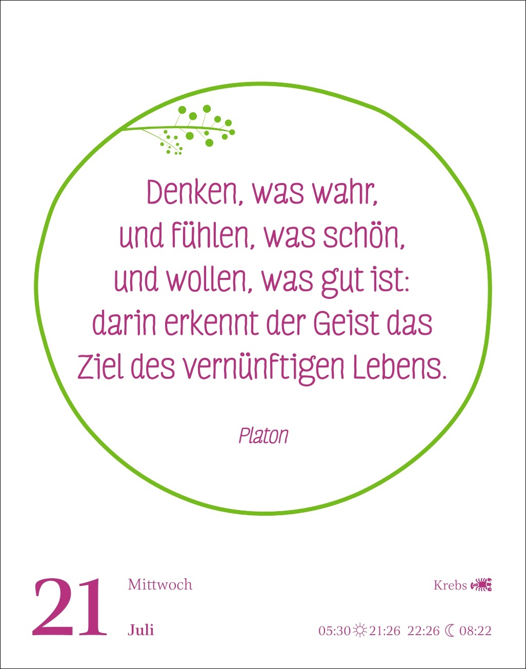 - Gestaltet in klaren, stimmungsvollen Farbtönen: Tageskalender mit guten Gedanken von klugen Köpfen