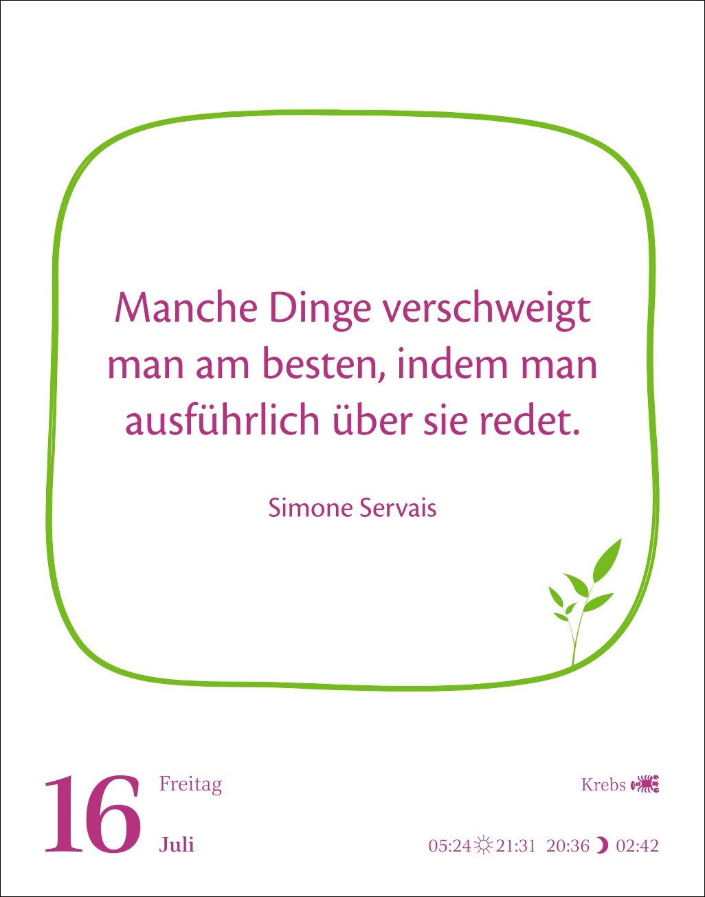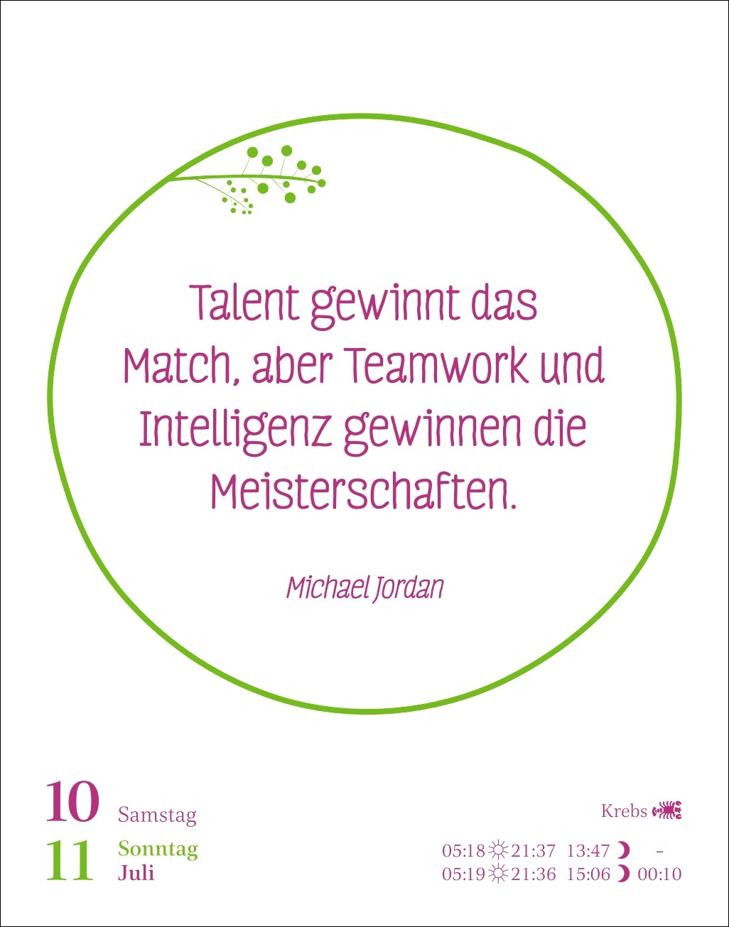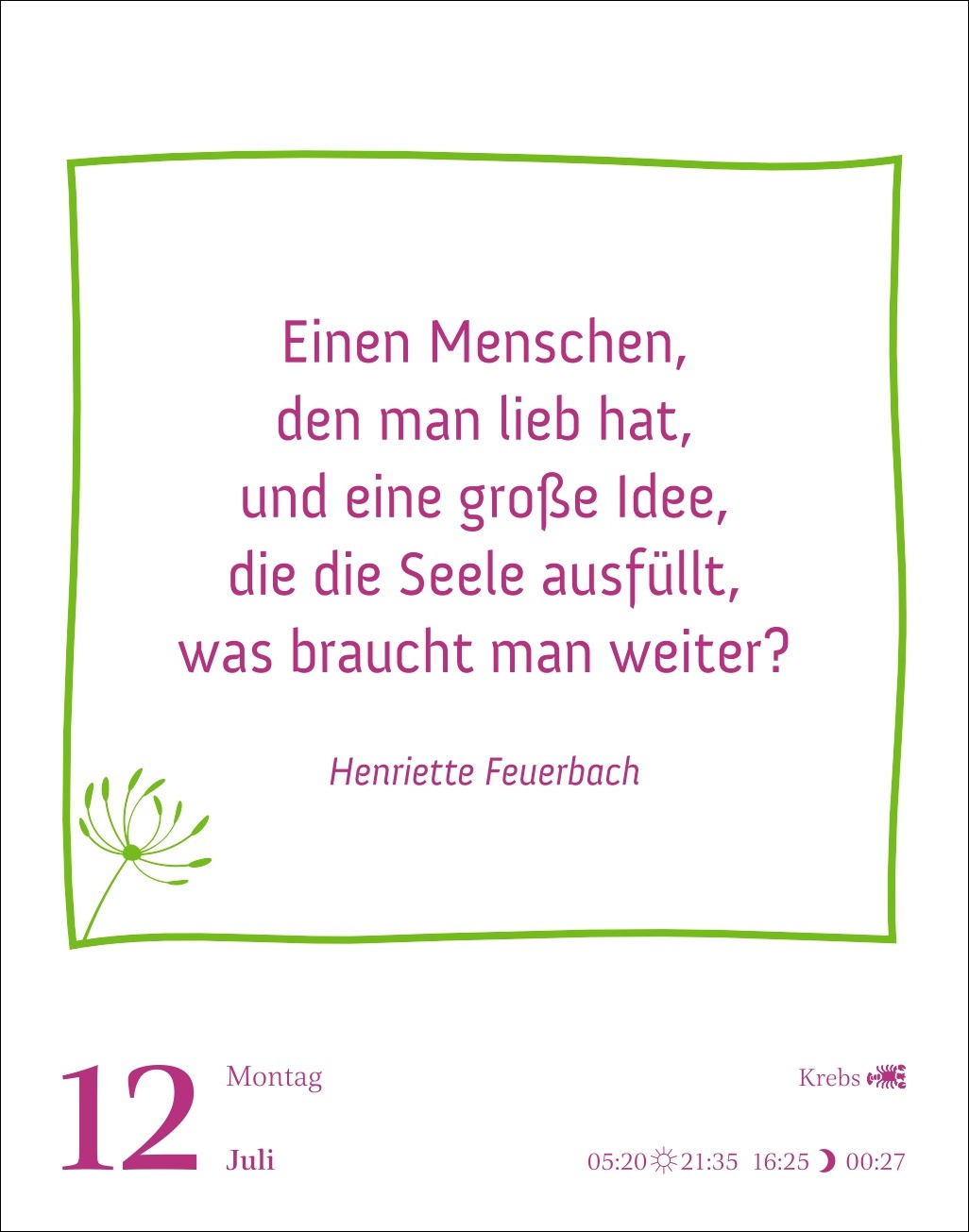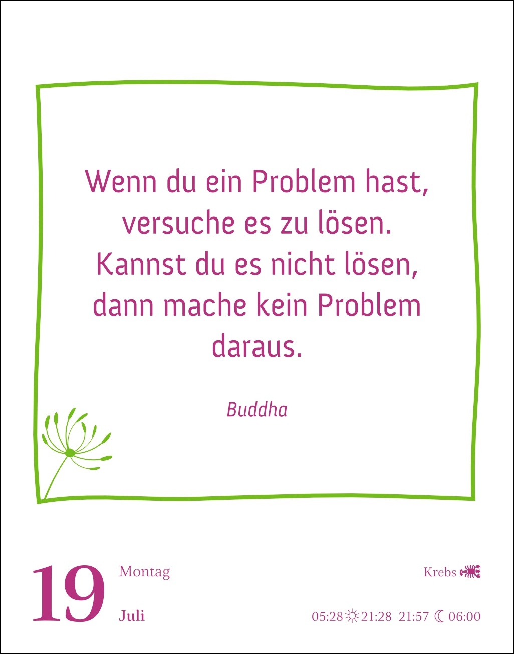 - Gestaltet in klaren, stimmungsvollen Farbtönen: Tageskalender mit guten Gedanken von klugen Köpfen